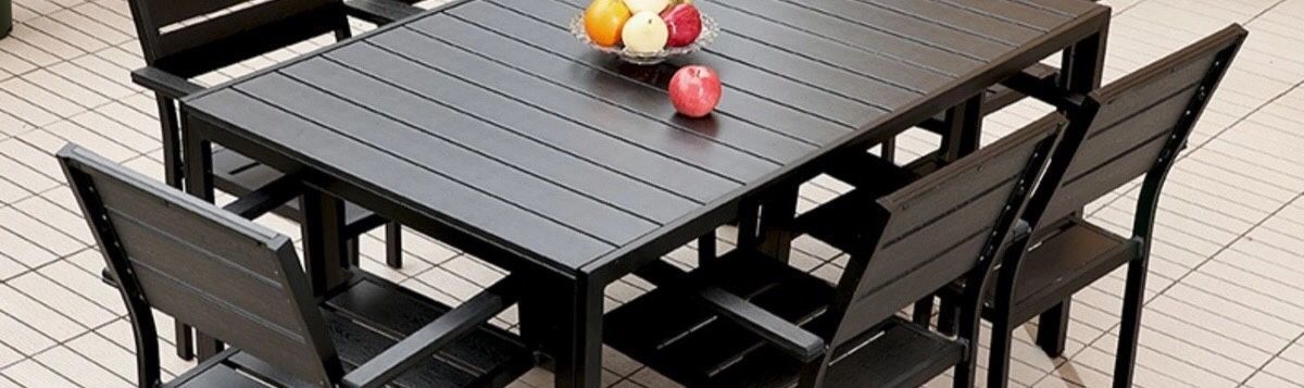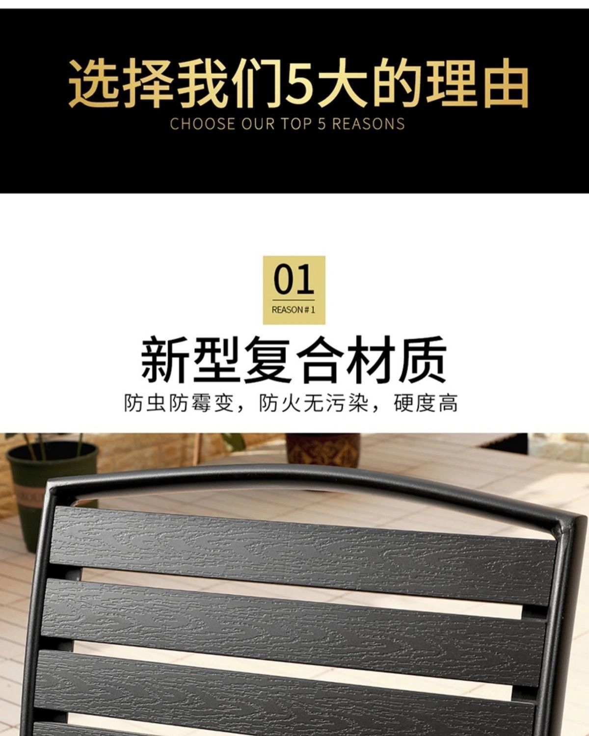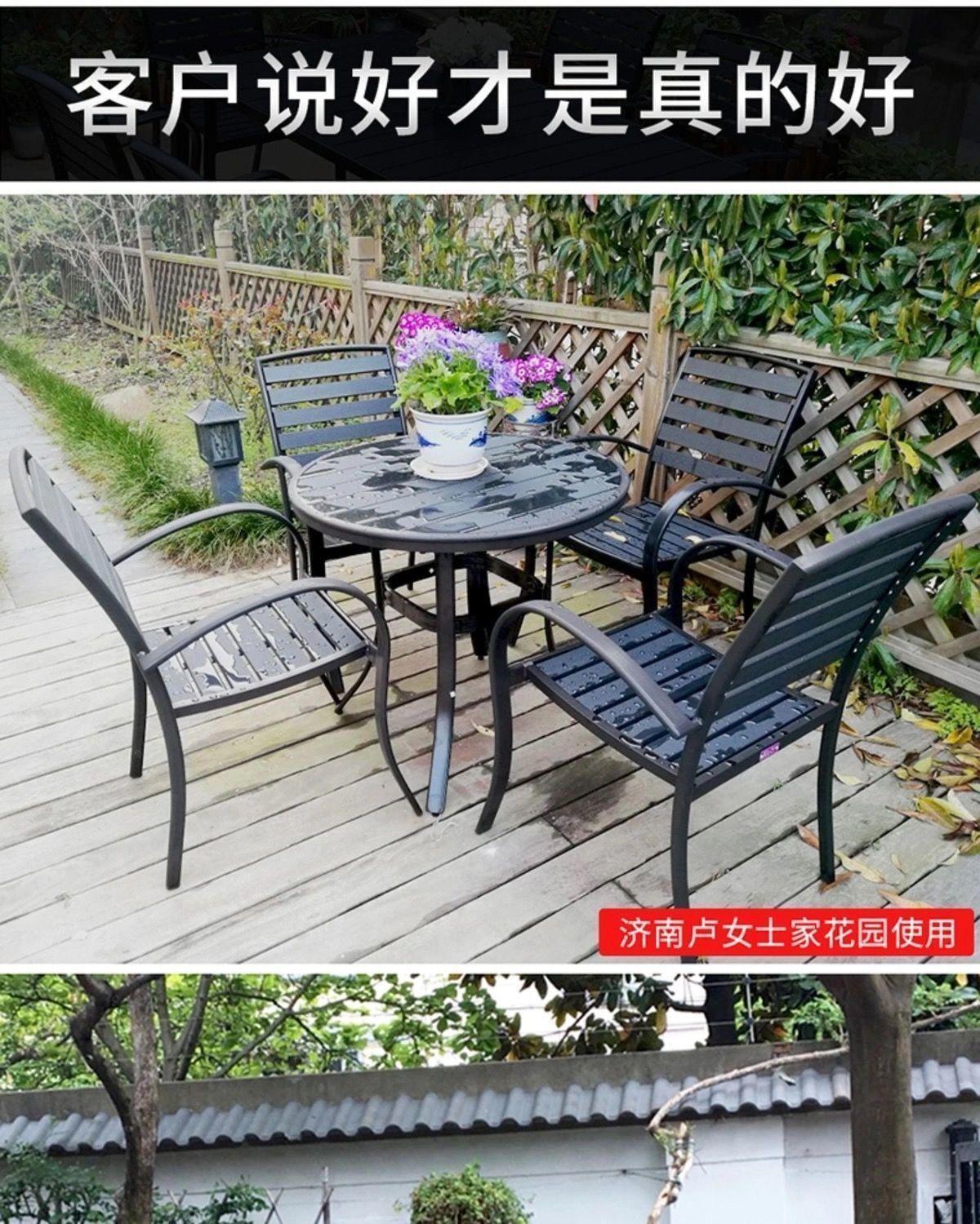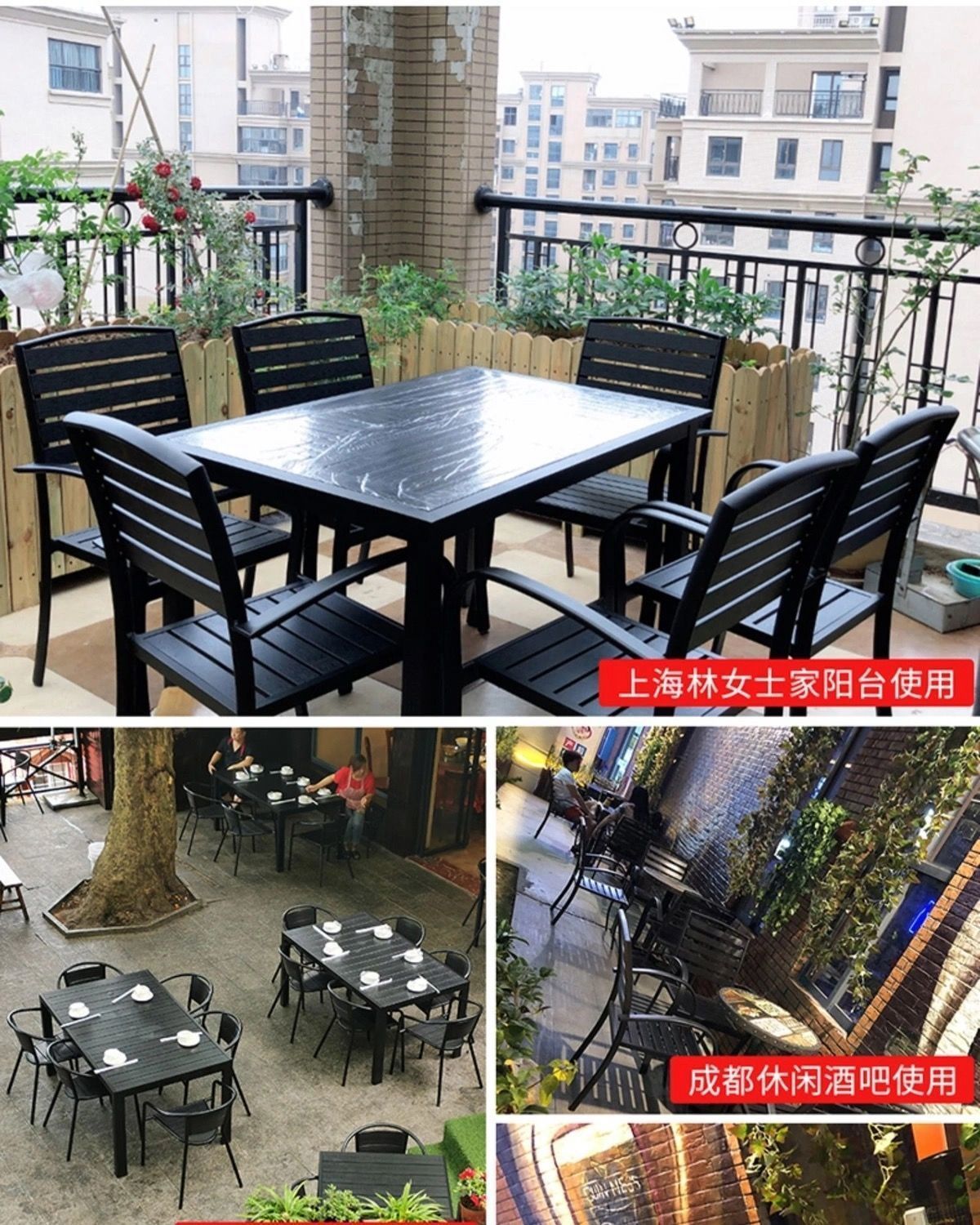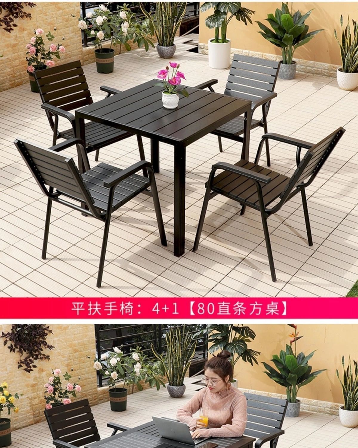플라스틱 목재 테이블과 의자 세트, 안뜰 빌라 정원 야외 레저 발코니 내마모성 방부목 테이블과 의자 식탁스토어 가기