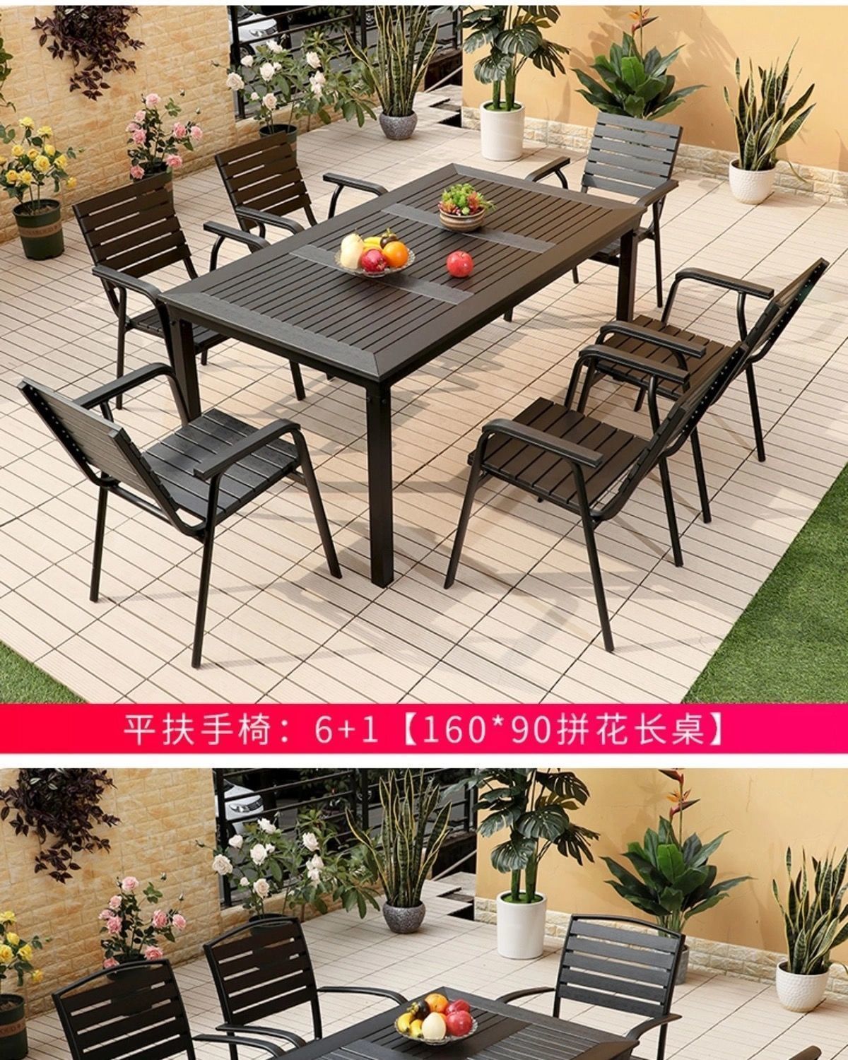 • 평평한 팔걸이 6 의자 + 160*90 긴 테이블