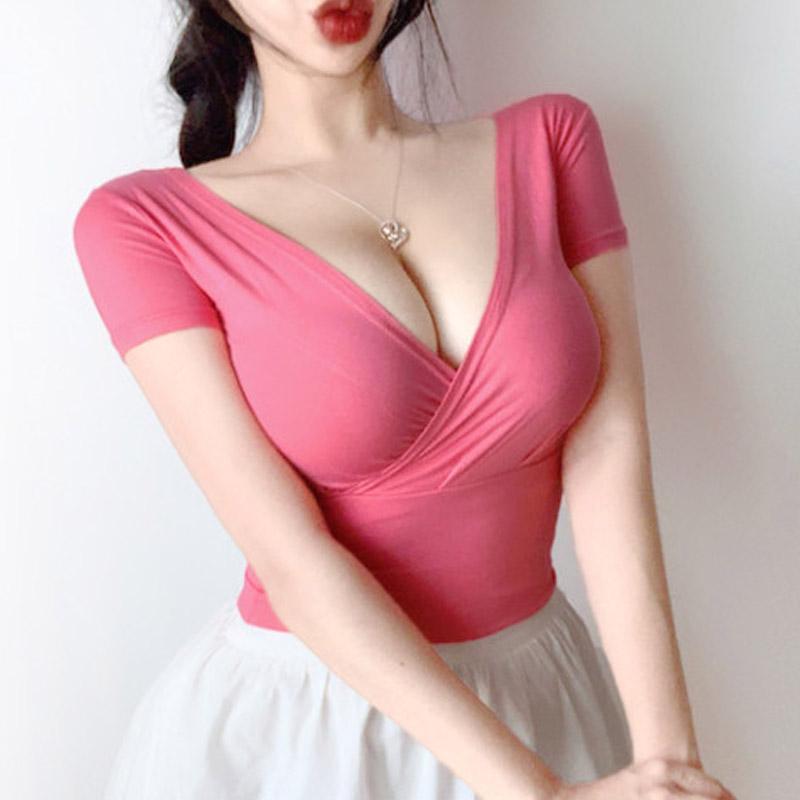 뚱뚱한 mm300 진 크로스 깊은 V-넥 가슴 플러스 사이즈 200 섹시주의 기계 티셔츠 배꼽 슬림 슬림 재킷 여성스토어 가기