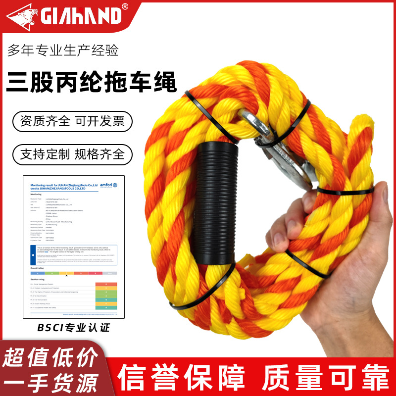 후크 구조 트레일러 옥외 차 풀 로프 부착 폴리프로필렌 트레일러 로프 공장 직공급 도매 3 가닥스토어 가기