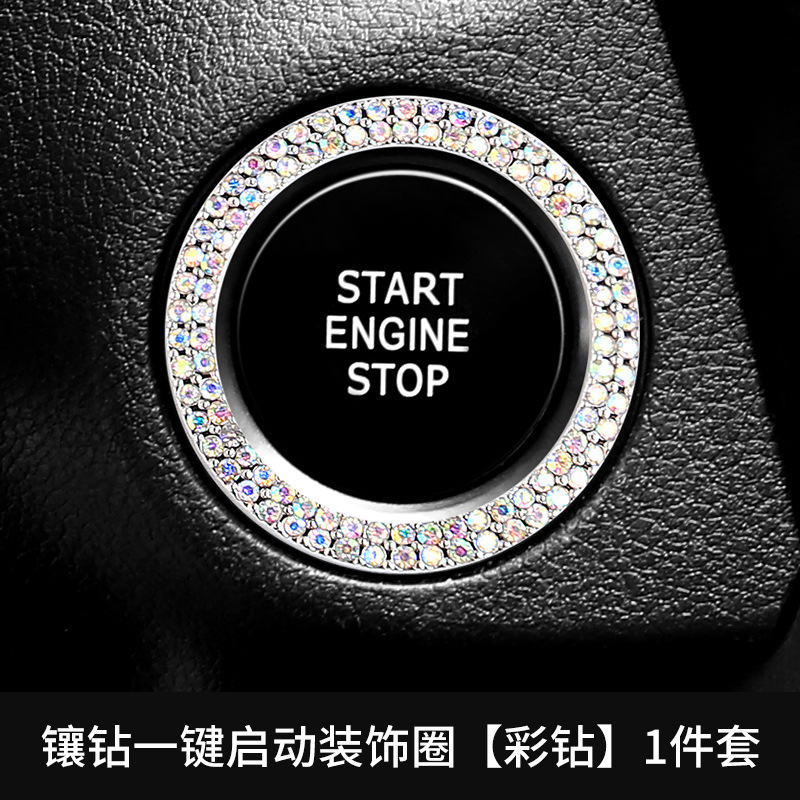 크로스 보더 자동차 원 버튼 시작 장식 스티커 보호 커버 수정 점화 스위치 버튼 스티커 다이아몬드 링 자동차 인테리어 용품스토어 가기