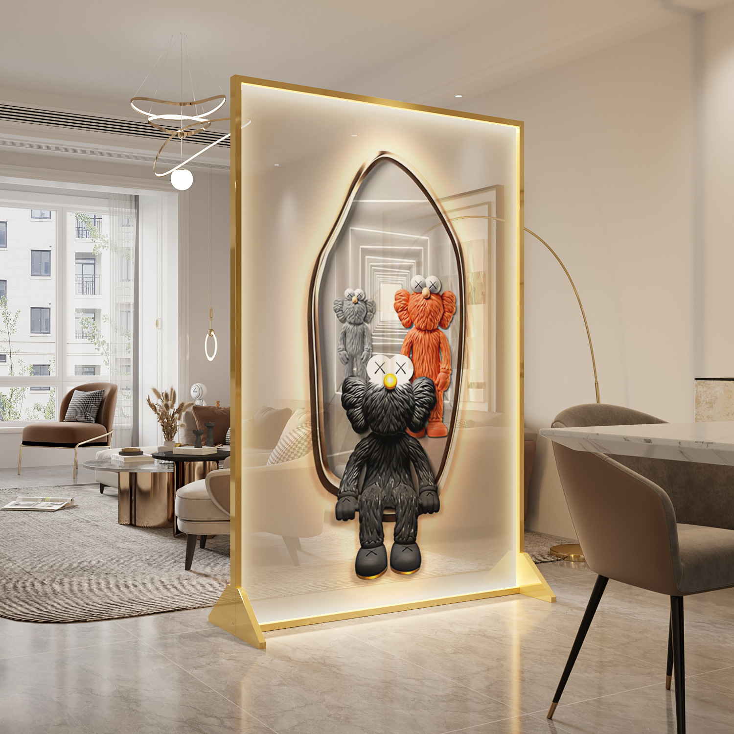 라이트 럭셔리 트렌디 플레이 kaws 간단한 현대 화면 파티션 거실 입구 복도 차단 침실 모바일 금속 벨트 빛
