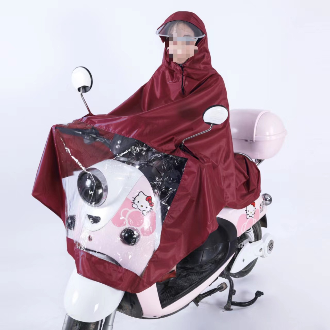 전기 자동차 비옷 2 인용 특대형 두꺼운 비옷 125 오토바이 판초 페달 판초 발 커버 얼굴 보호 방수스토어 가기