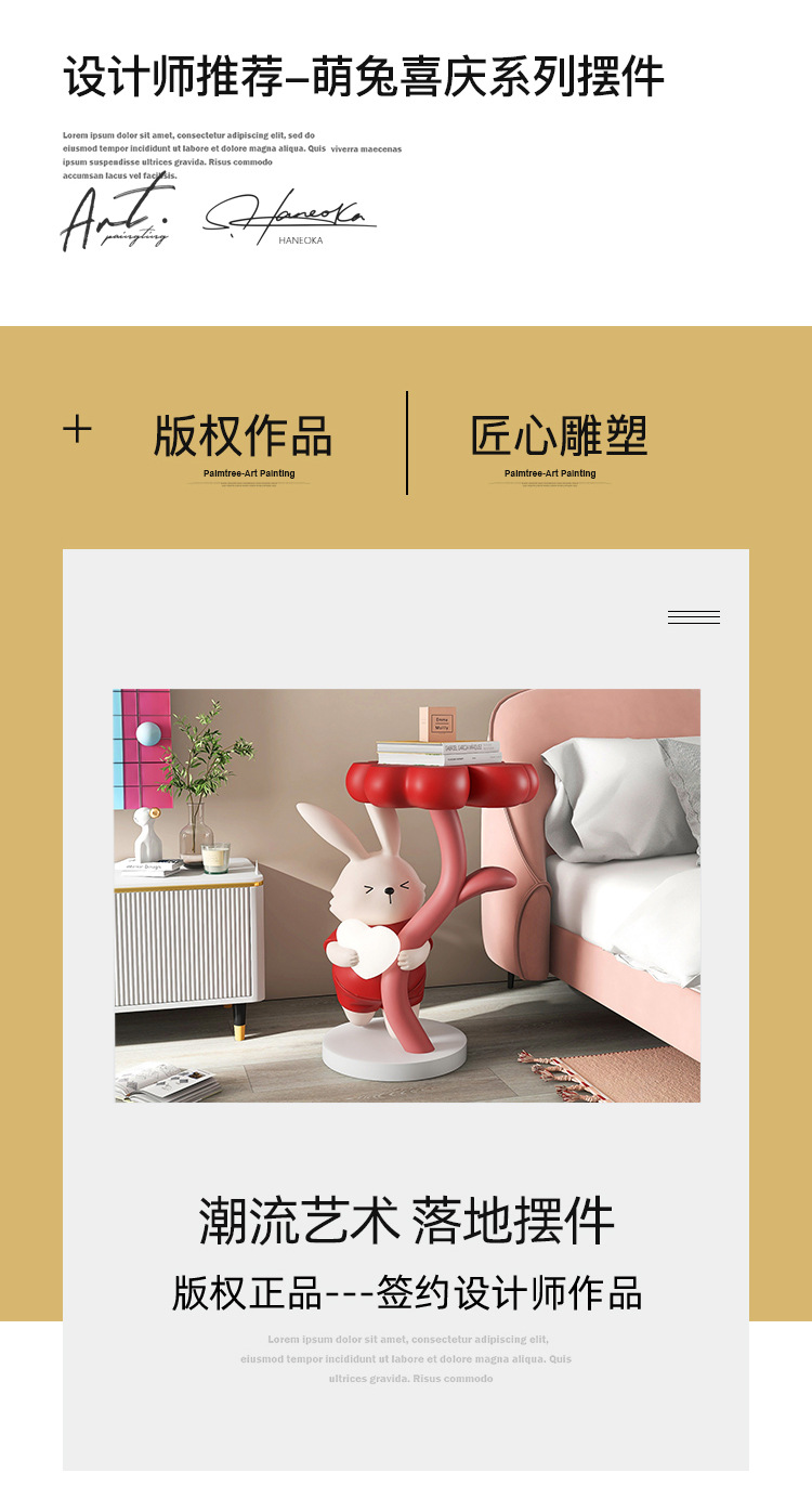 • 네잎 클로버 토끼 차 테이블 장식품-해피 레드 [75cm 높이]