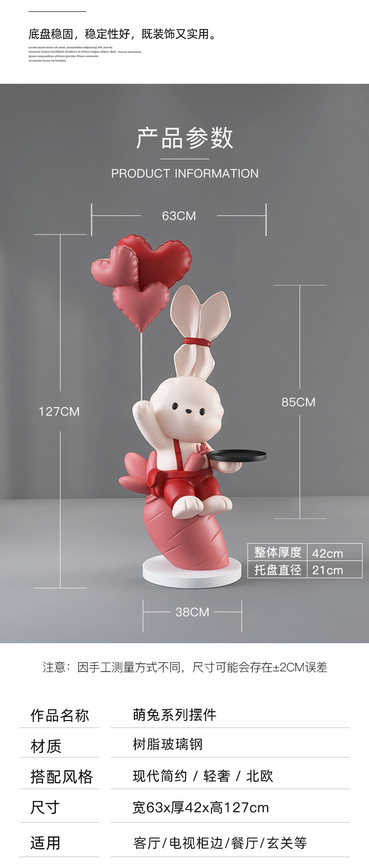 • 무 토끼 트레이 장식-해피 레드 [122cm 높이]