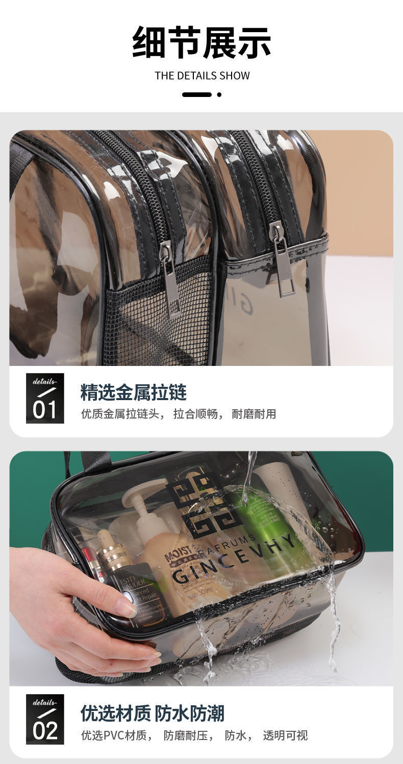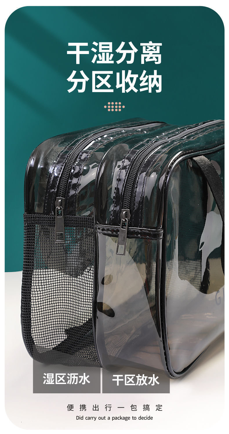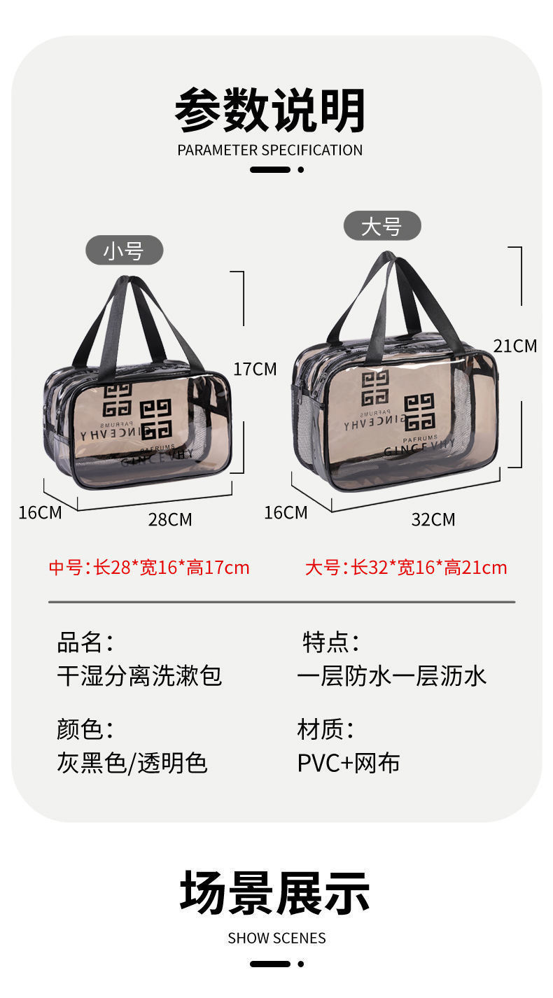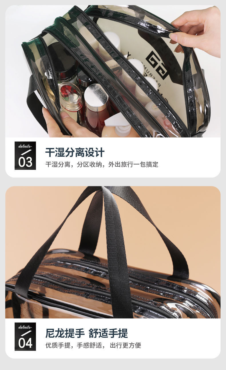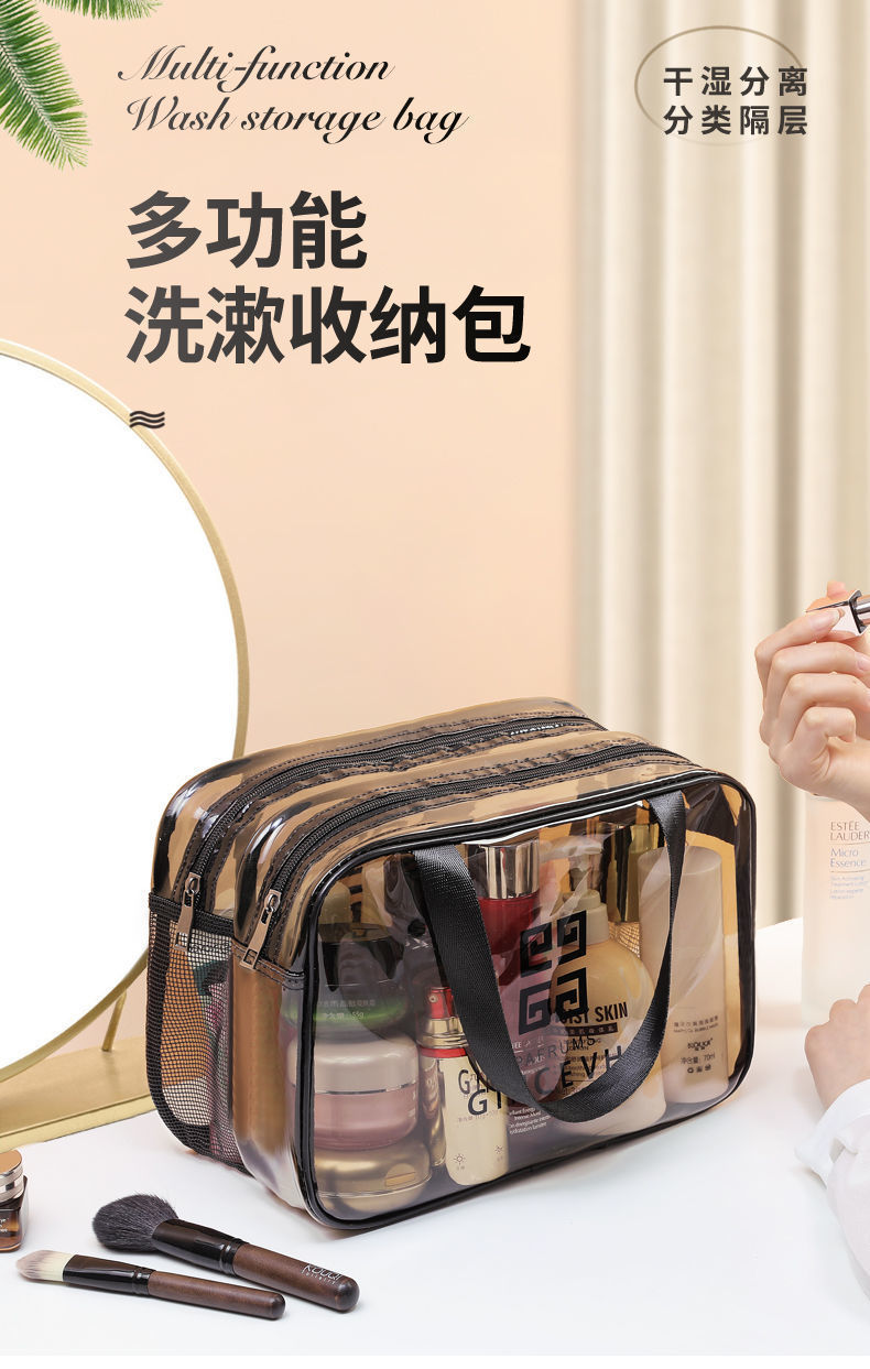 건조하고 젖은 별도의 화장품 가방 PVC 방수 투명 화장실 가방 두꺼운 저장 가방 휴대용 여행 다층 보관 가방