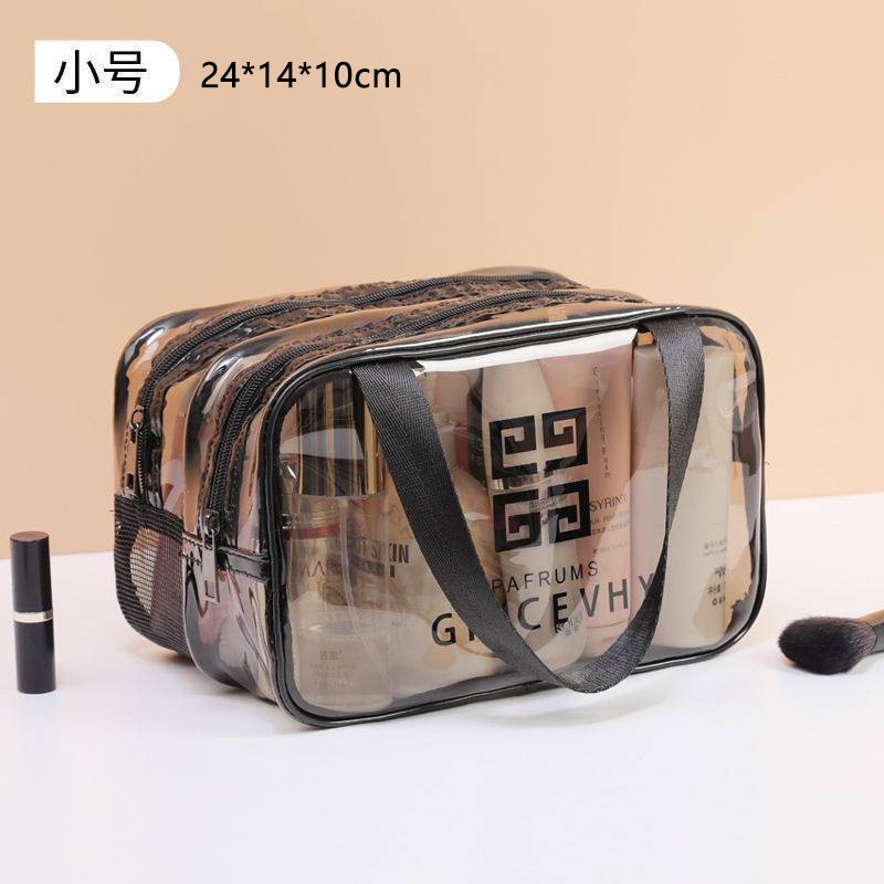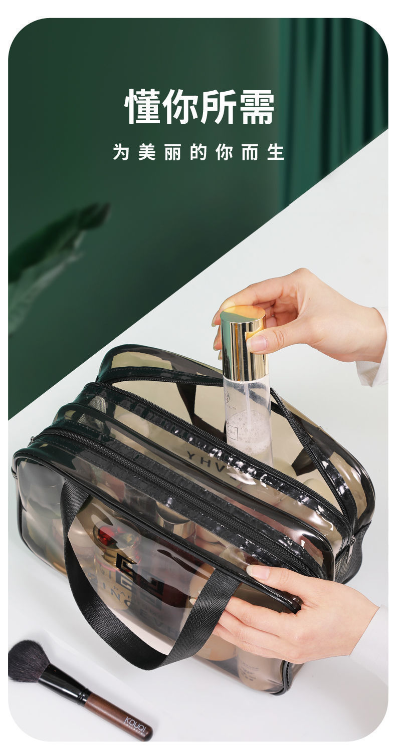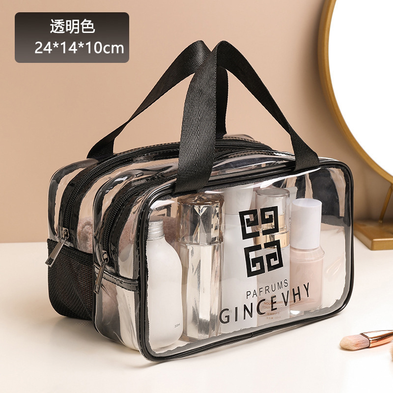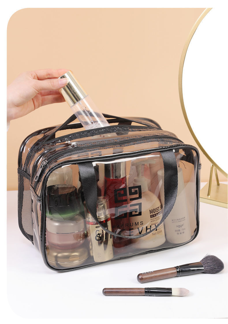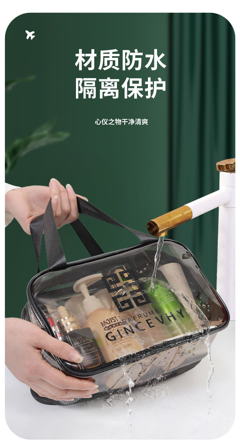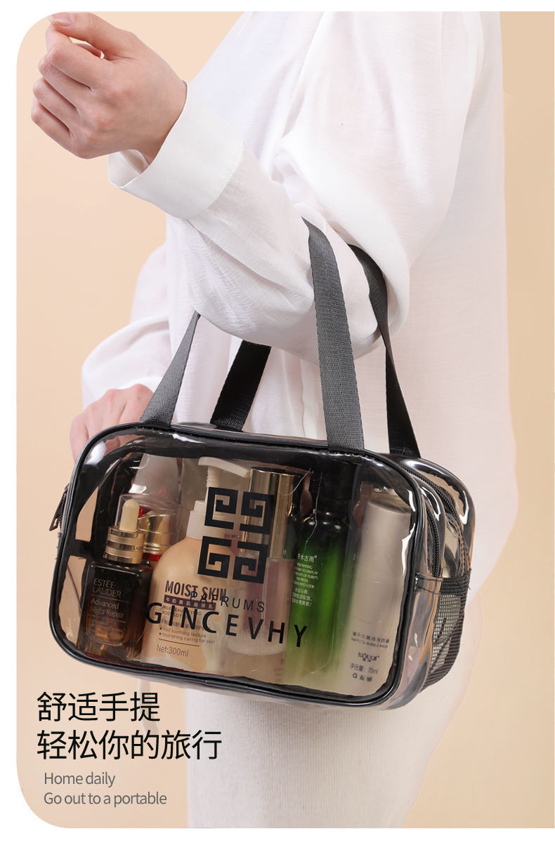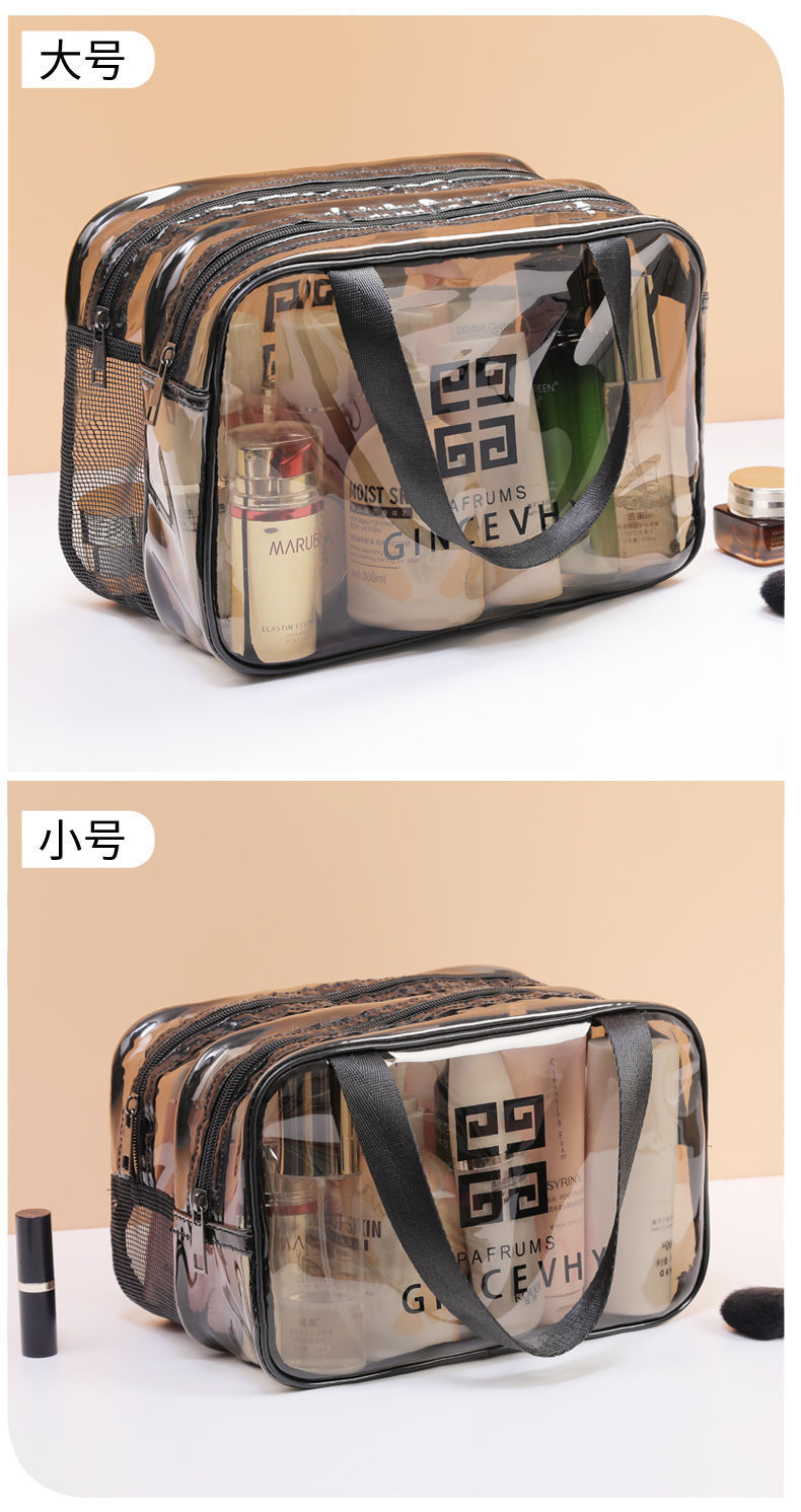 건조하고 젖은 별도의 화장품 가방 PVC 방수 투명 화장실 가방 두꺼운 저장 가방 휴대용 여행 다층 보관 가방