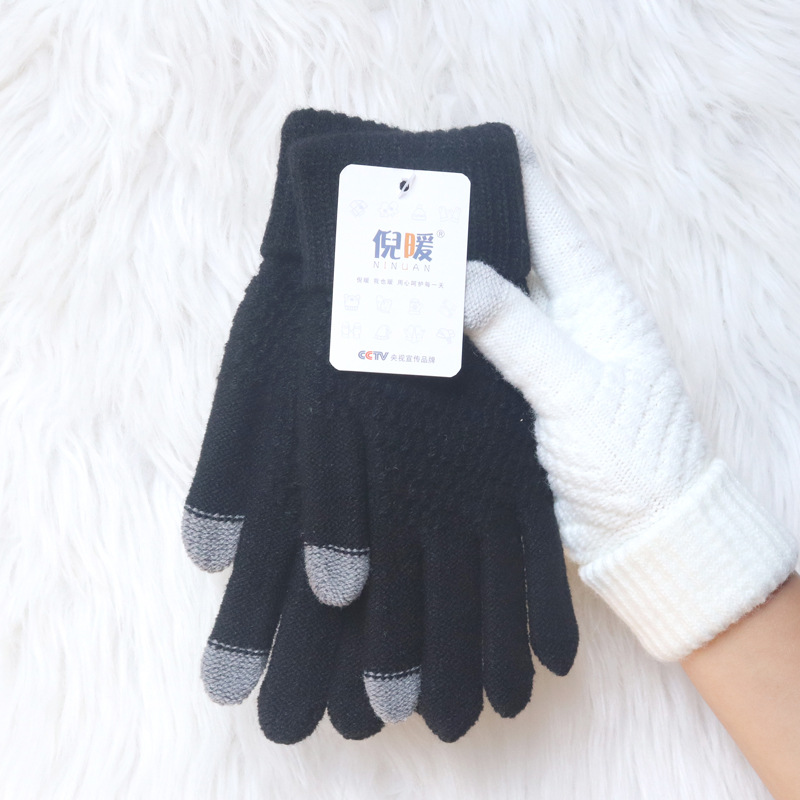 장갑 여자의 겨울 기모 두꺼운 이중 나사 감기 방지 귀여운 승마 터치 스크린 울 니트 따뜻한 장갑 도매
