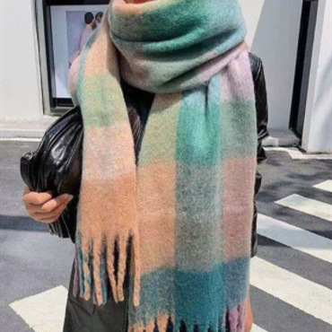 새로운 무지개 격자 무늬 스카프 여성의 겨울 클라인 블루 두꺼운 브레이드 색상 격자 무늬 따뜻한 두꺼운 Instagram 인기 귀여운스토어 가기