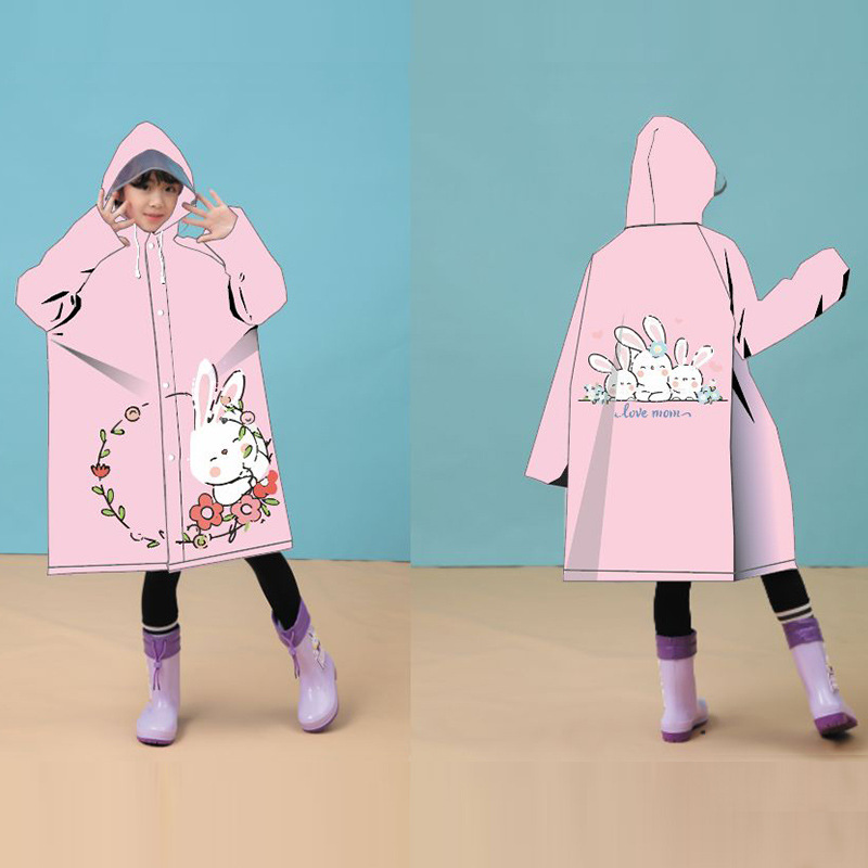 2022 신우의 성인 휴대용 EVA 인쇄 패턴 어린이 만화 토끼 학생 비옷 도매 공장스토어 가기