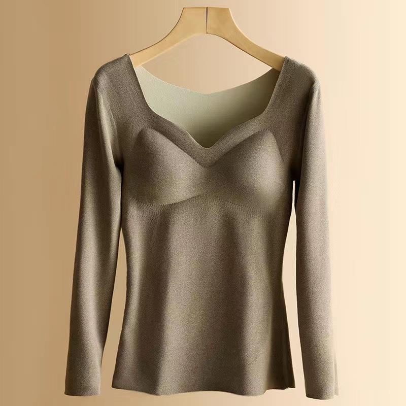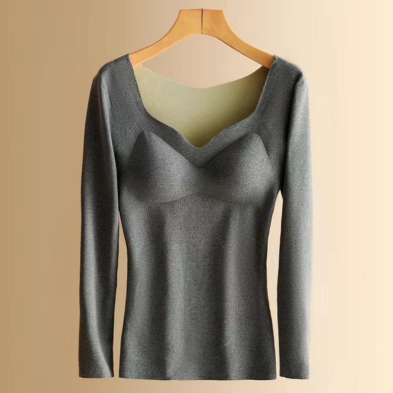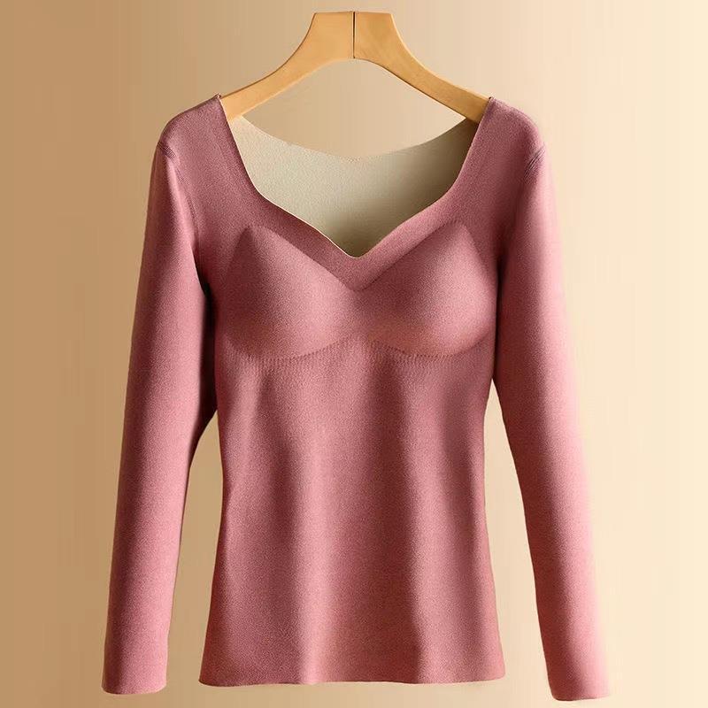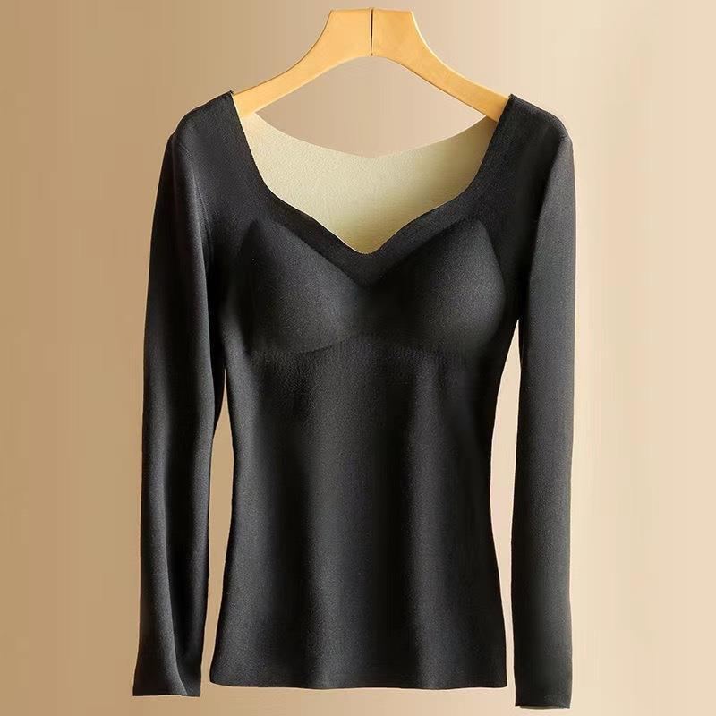 가을과 겨울 탑 긴팔 기모 두꺼운 열 속옷 여성용 비 마킹 자체 발열 잠옷 가슴 패드 기본 셔츠스토어 가기