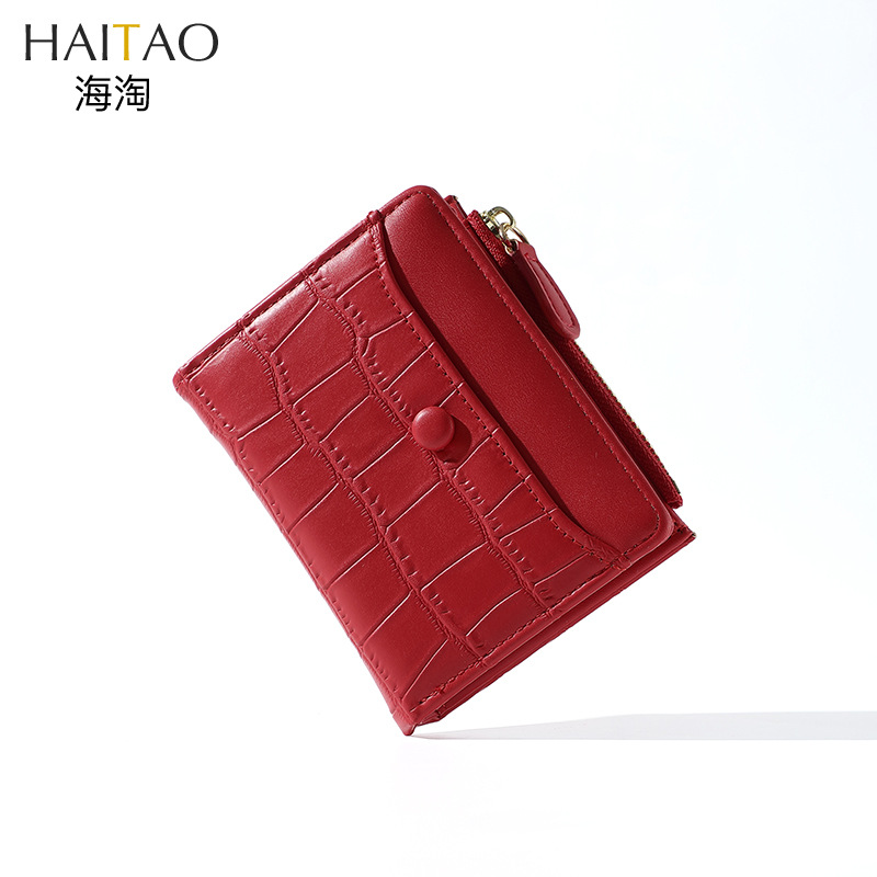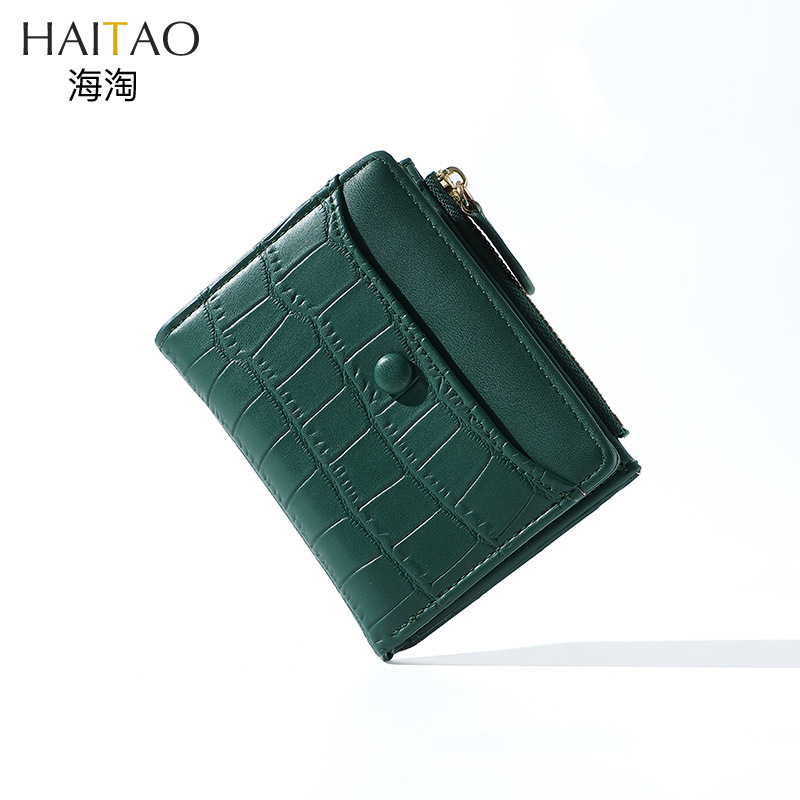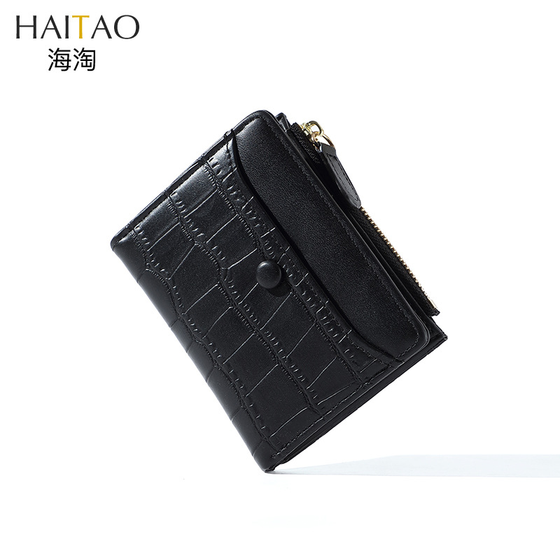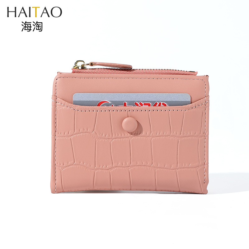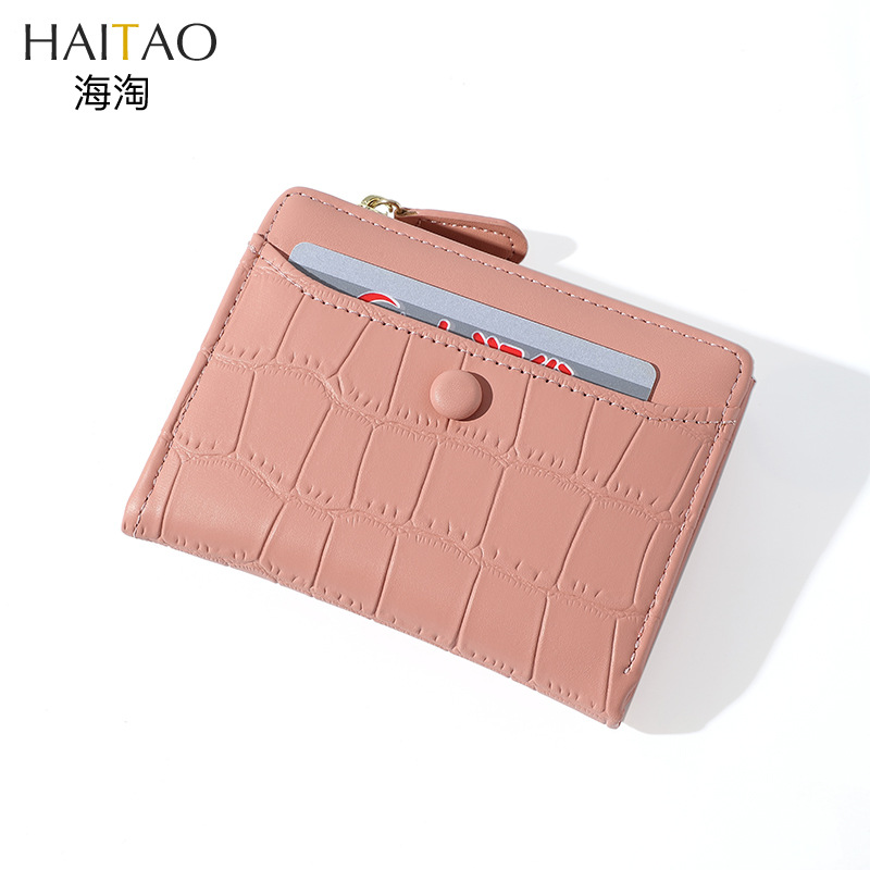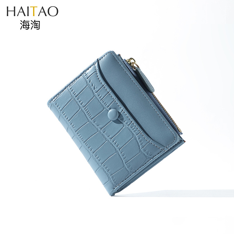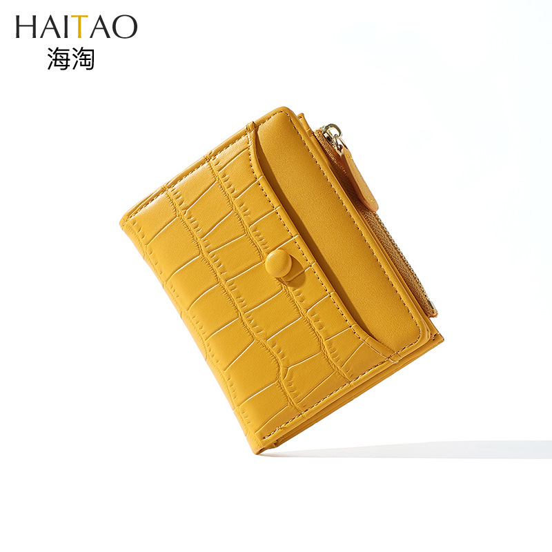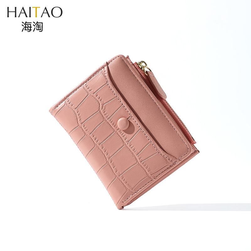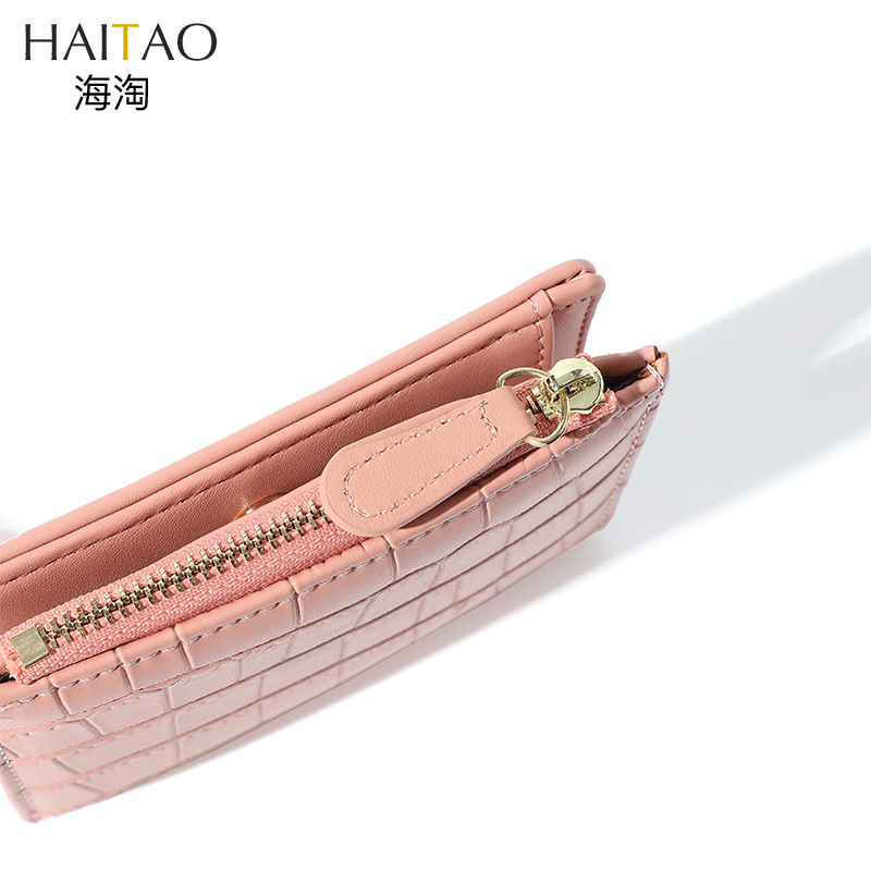 하이타오 뉴 2 중 지갑 짧은 지퍼 pu 동전 지갑 유행 대용량 멀티 카드 여성 지갑스토어 가기
