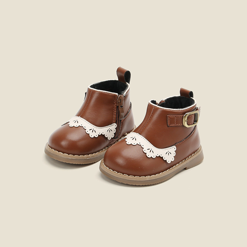 Maibu 곰 한국어 작은 가죽 부츠 아기 유아 신발 가을과 겨울 아기 소녀 마틴 부츠 기모 소녀 짧은 부츠스토어 가기