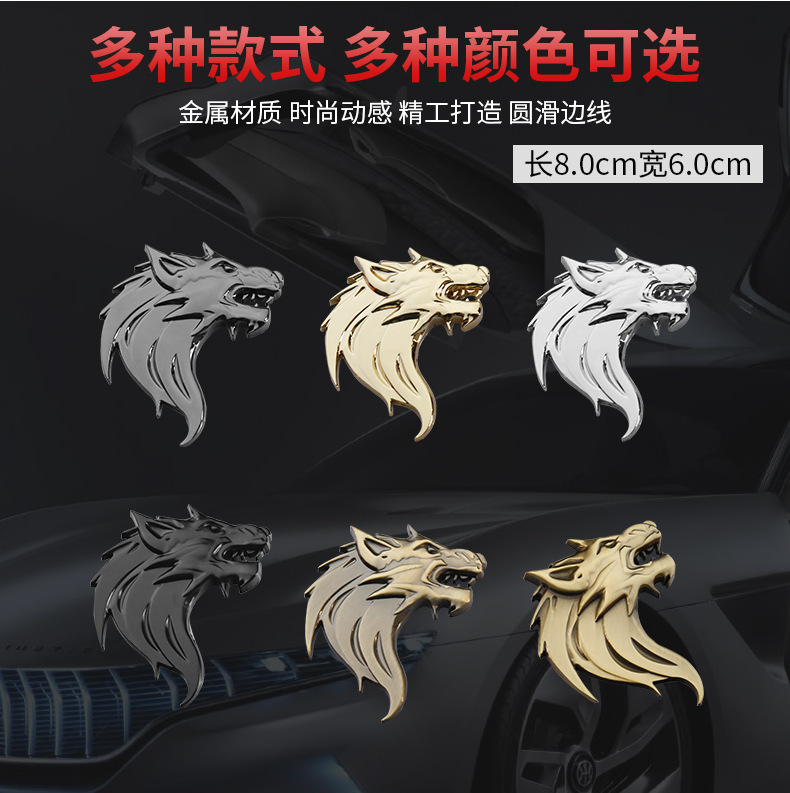 늑대 토템 배지 자동차 성격 늑대 머리 금속 자동차 스티커 수정 자동차 로고 늑대 머리 스티커 금속 늑대 로고 적합스토어 가기
