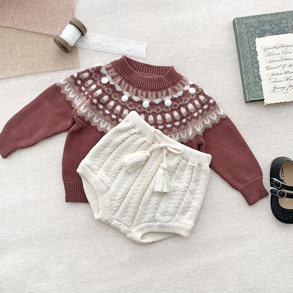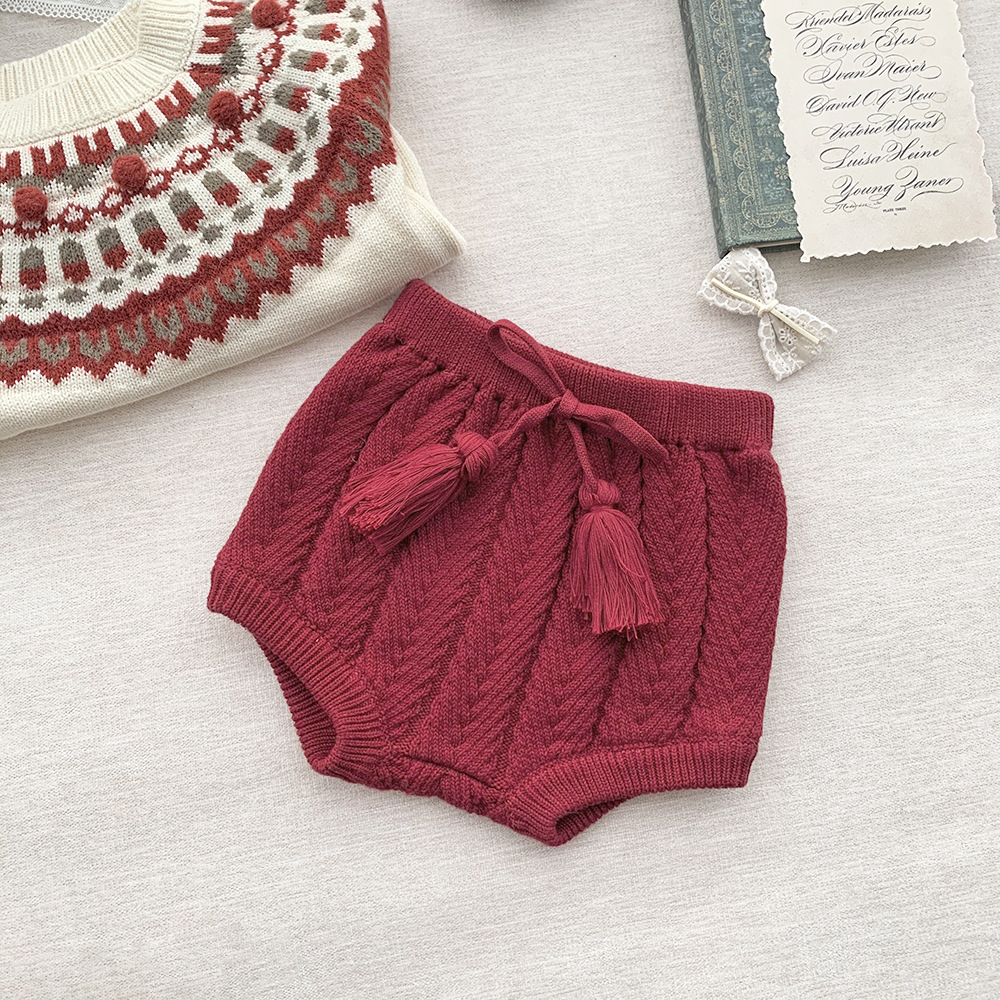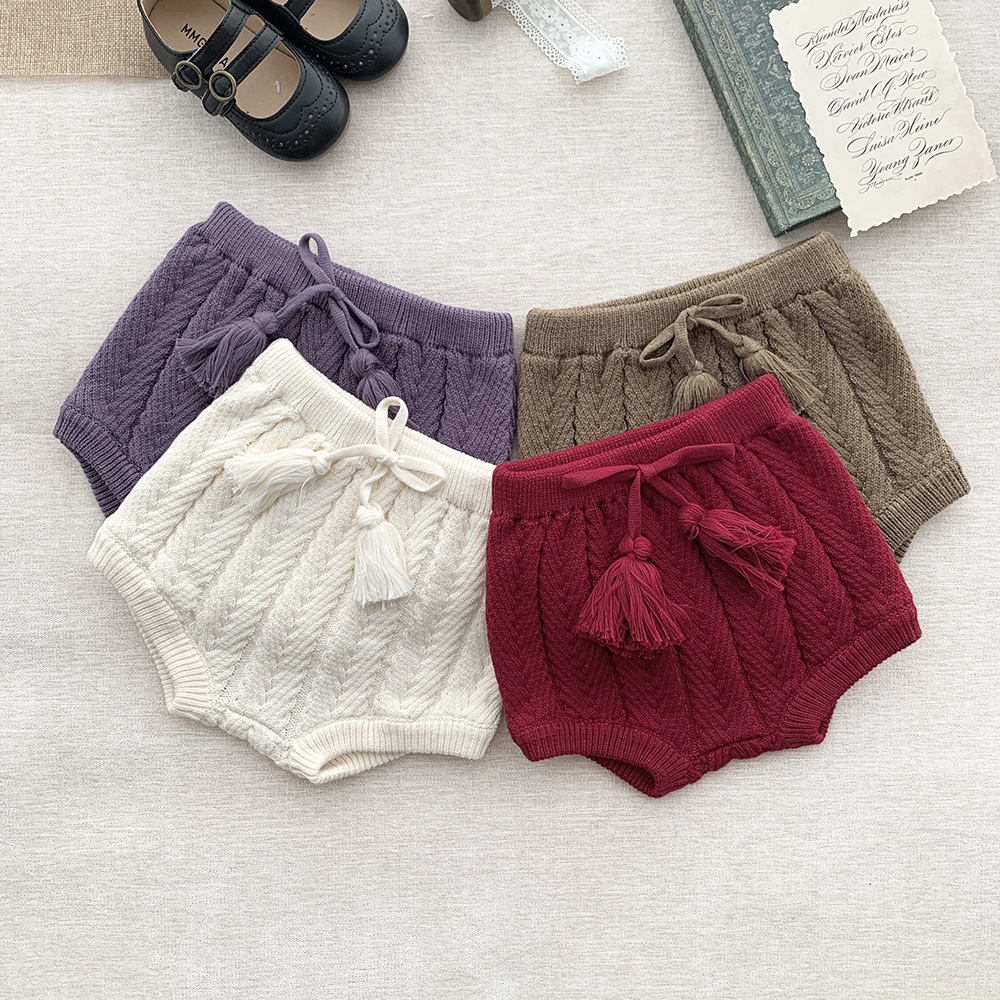가을과 겨울 크로스 보더 소녀의 꼬인 빵 바지 소년과 소녀를위한 모직 반바지 아기의 술 스트랩 엉덩이 바지스토어 가기