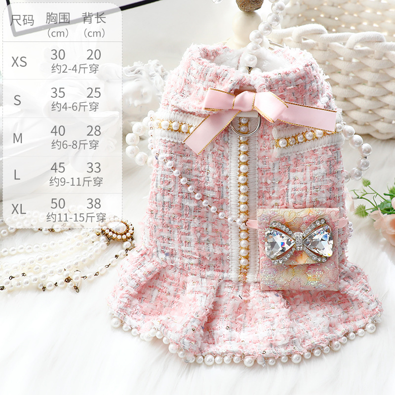 개 옷 가을과 겨울 고양이 공주 원피스 배낭 핑크 작은 향기 작은 개 테디 애완 동물 4269 도매