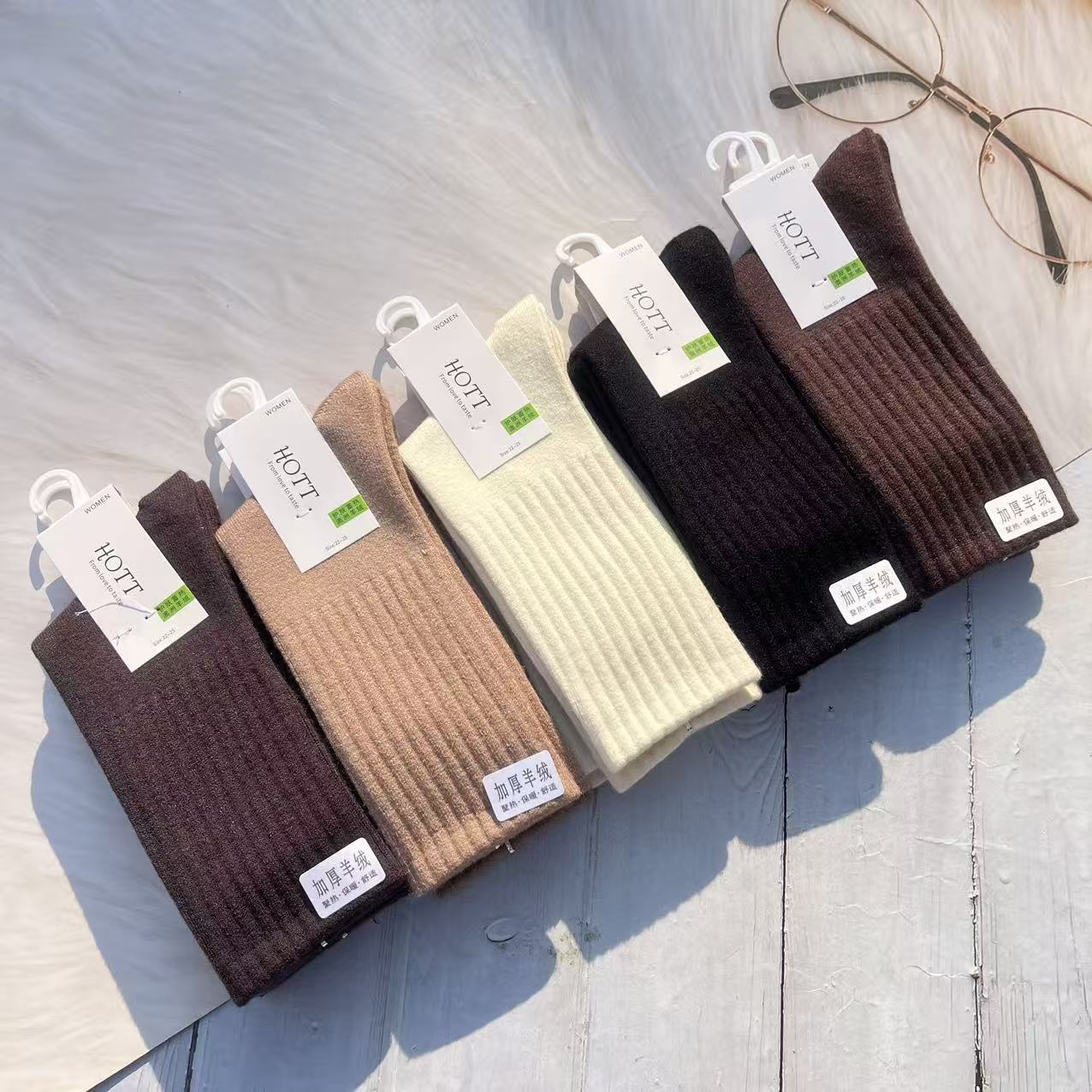좋은 목조 주택 겨울 새로운 캐시미어 더미 양말 따뜻한 두꺼운 여성의 긴 허리 양말 캐시미어 양말 일본과 한국 스타일