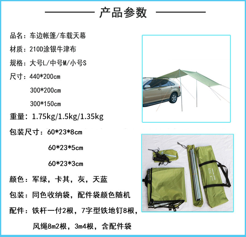 자동차 사이드 차양 방수 SUV 자동차 사이드 텐트 사이드 캐노피 옥외 오프로드 차량 자율 주행 투어 차량 장비