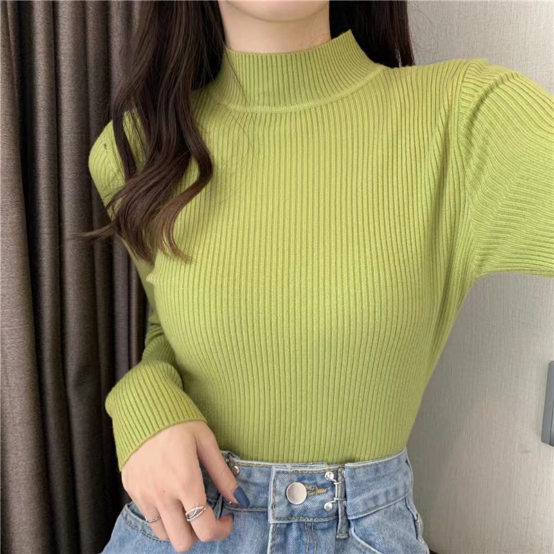 하프 터틀넥 스웨터 여성용 가을과 겨울 한국식베이스 셔츠 니트 스웨터 슬림핏 풀오버 탑 여성