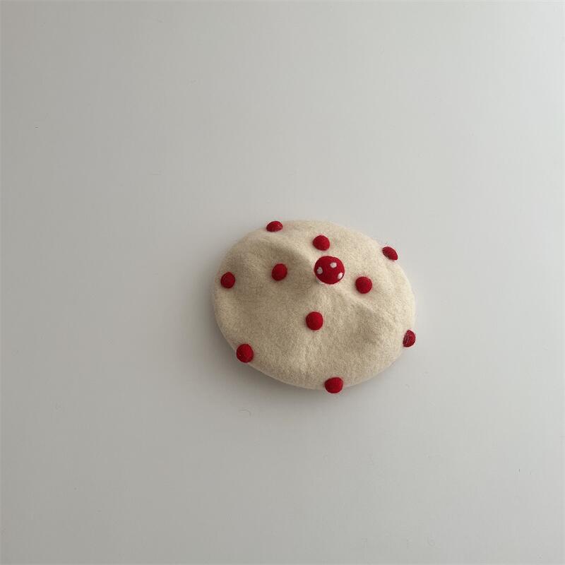 Ins 한국식 어린이 울 베레 트렌디 작은 버섯 점 패션 모자 겨울 아기 올매치 그림 모자