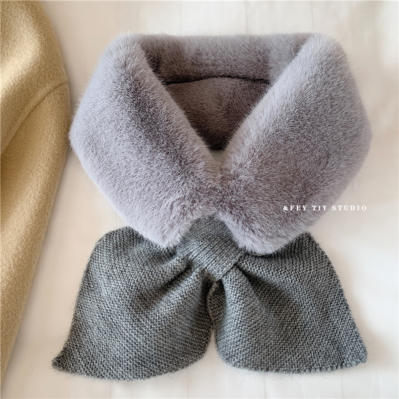 문학 감각 작은 제비 꼬리 마오 스카프 세련된 스타일 가짜 목걸이 모조 모피 토끼 모피 스카프