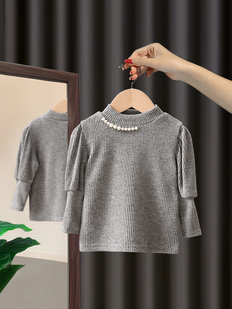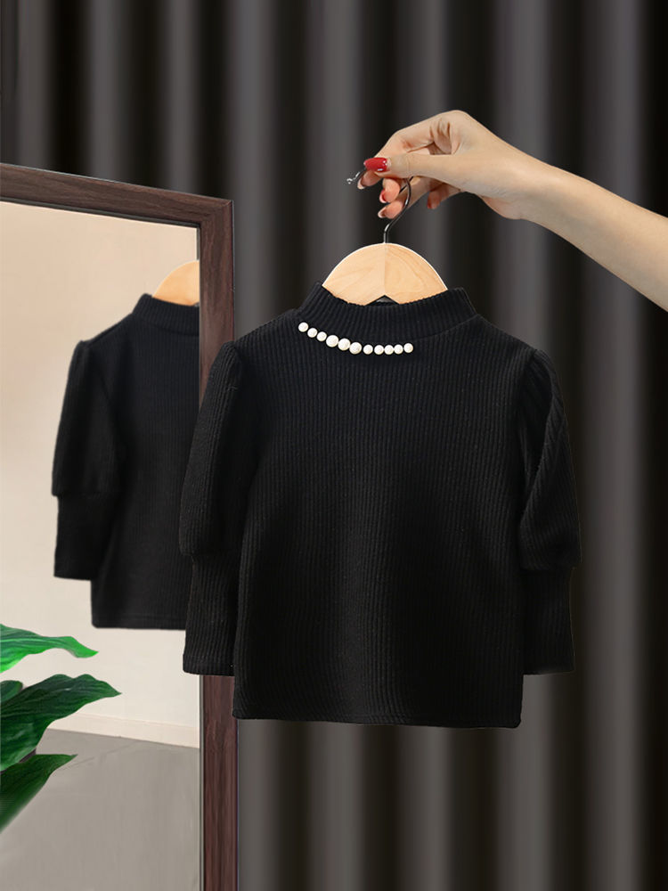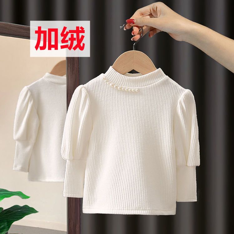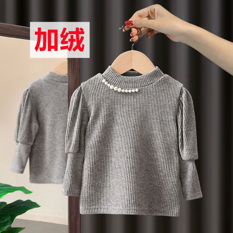 여아 하의 셔츠 가을/겨울 기모 2022 새로운 어린이 세미 하이 칼라 티셔츠 어린이 니트 탑 아기 세련된