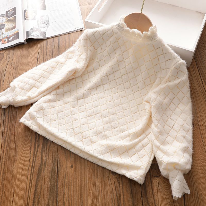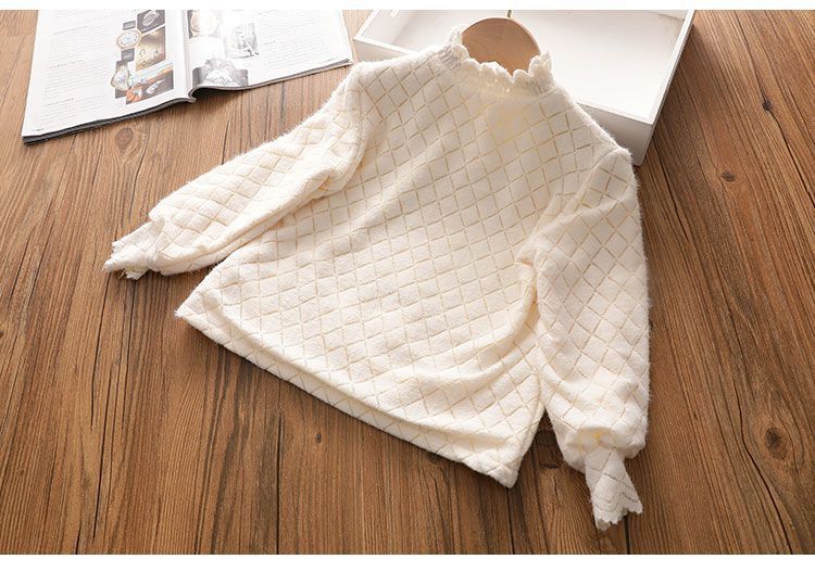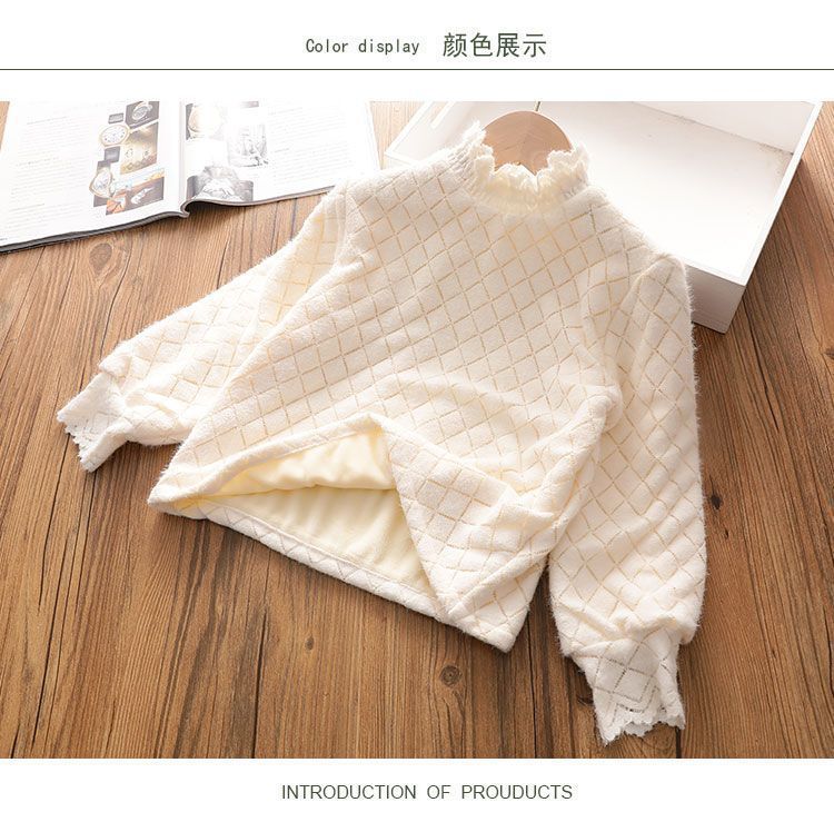 여아 기모 레이스 베이스 셔츠 2022 늦은 가을과 겨울 새로운 아기 스타일 꽃 롤빵 칼라 탑 스웨터 한국 스타일