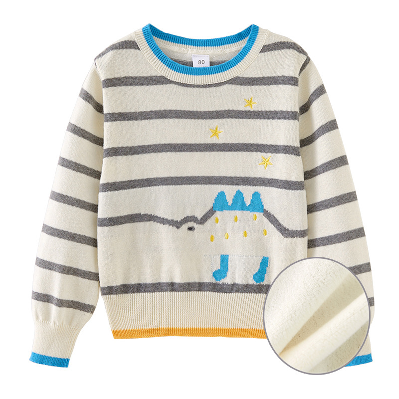 2022 봄과 가을 어린이 스웨터 기모 줄무늬 스웨터 봄과 가을 소년 소녀 기본 스웨터 도매