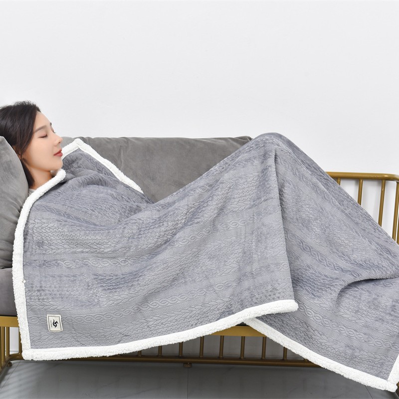 品名;披肩毯,A面法兰绒压花,B面羊羔绒