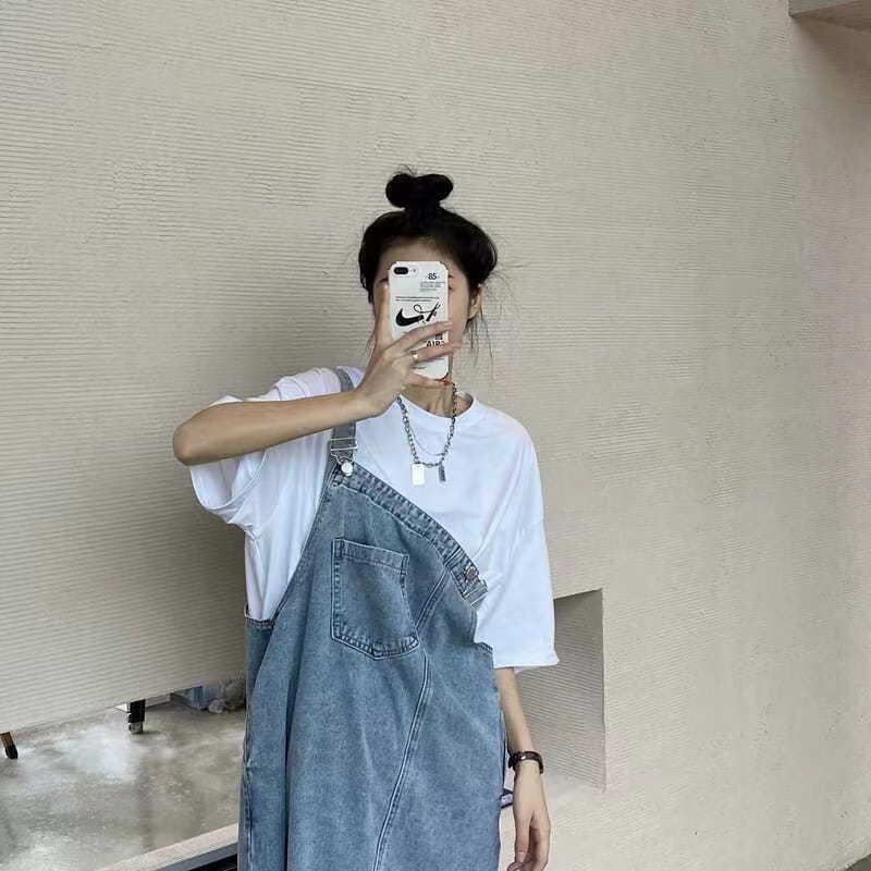 데님 스트랩 원피스 여성의 디자인 감각 틈새 우아한 슬립 스커트 봄과 여름 느슨한 플러스 사이즈 통통녀 원피스스토어 가기