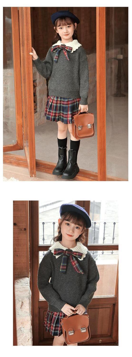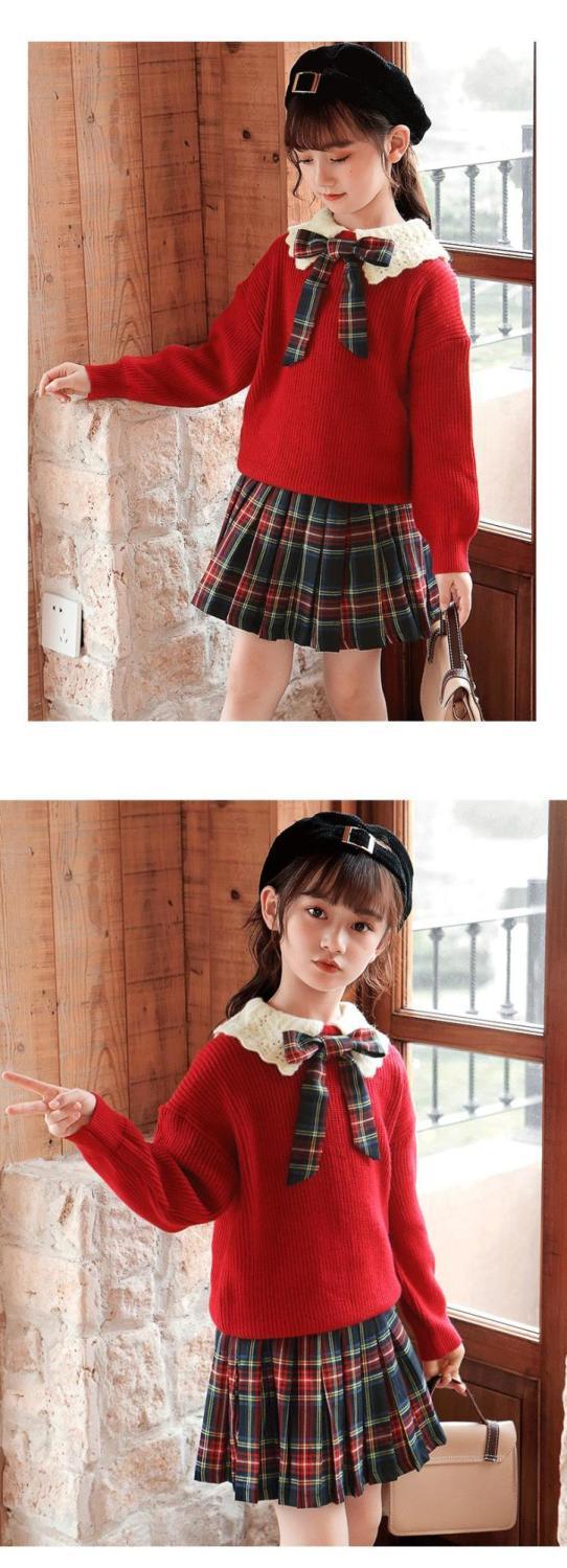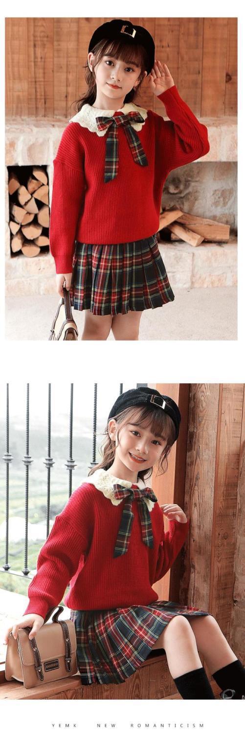 여자의 가을과 겨울 원피스 봄 신상품 서양 스타일 어린이 대학 스타일 니트 풀오버 스웨터 유행 플리츠 스커트스토어 가기