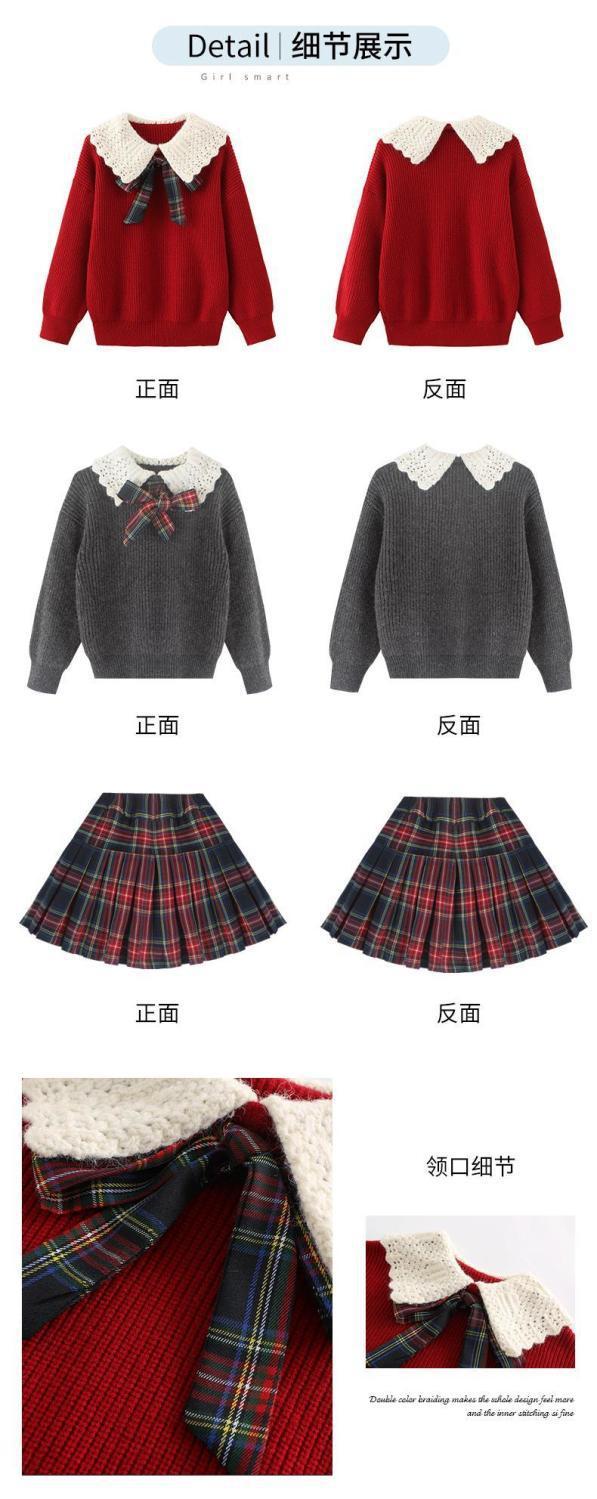 여자의 가을과 겨울 원피스 봄 신상품 서양 스타일 어린이 대학 스타일 니트 풀오버 스웨터 유행 플리츠 스커트
