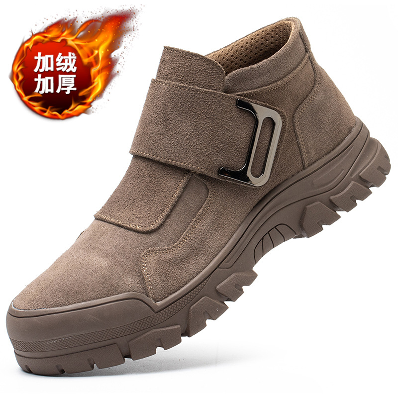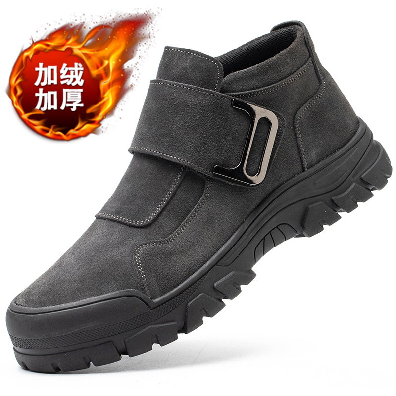 Haojia 노동 보호 신발 남성용 안티 스매싱 및 안티 피어싱 겨울 따뜻한 가죽 미끄럼 방지 부드러운 바닥 보호 내화 용접기 신발스토어 가기