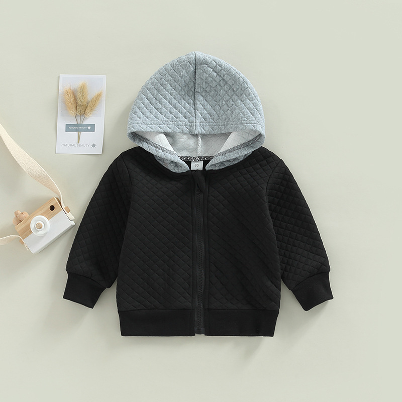 크로스 보더 새로운 가을과 겨울 어린이 후드 단색 격자 무늬 외부 코트 봄과 가을 소년 회색 모자 긴 소매 코트스토어 가기