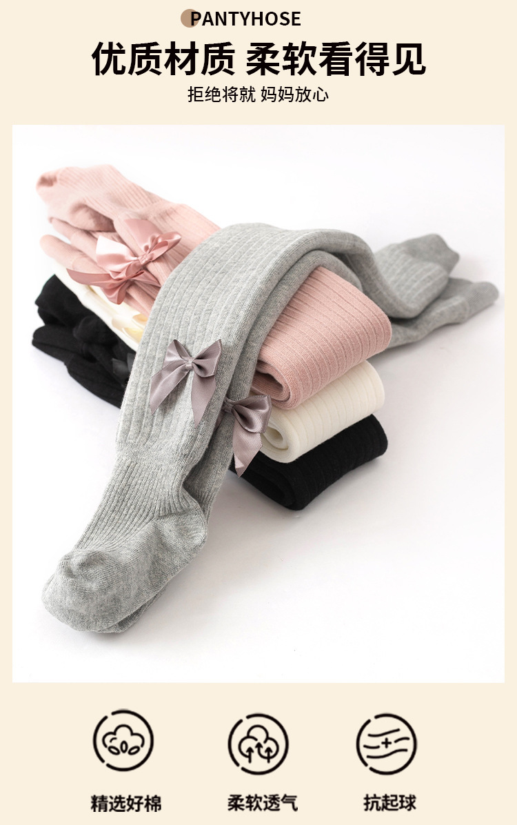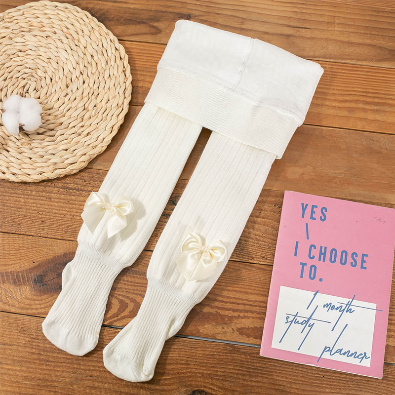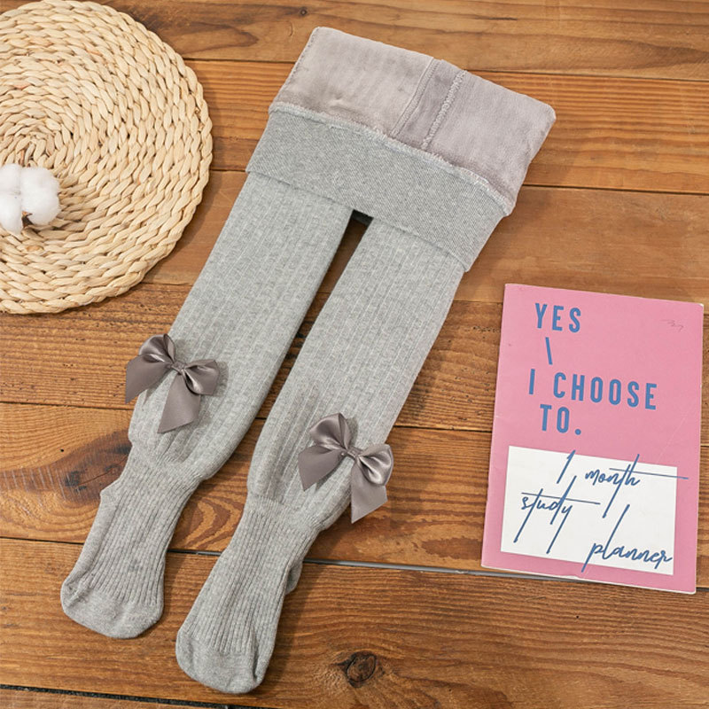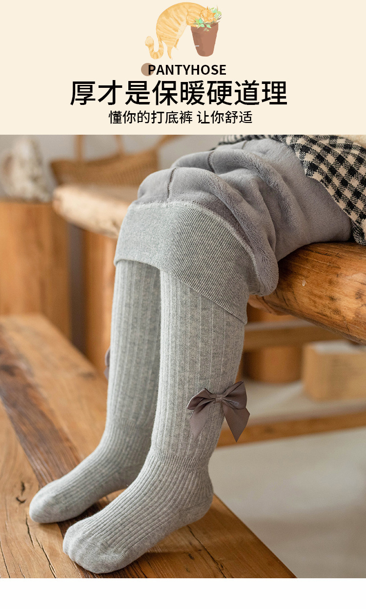 가을과 겨울 두꺼운 단색 활 소녀 레깅스 따뜻한 아기 바닥 양말 기모 어린이 팬티 스타킹 도매