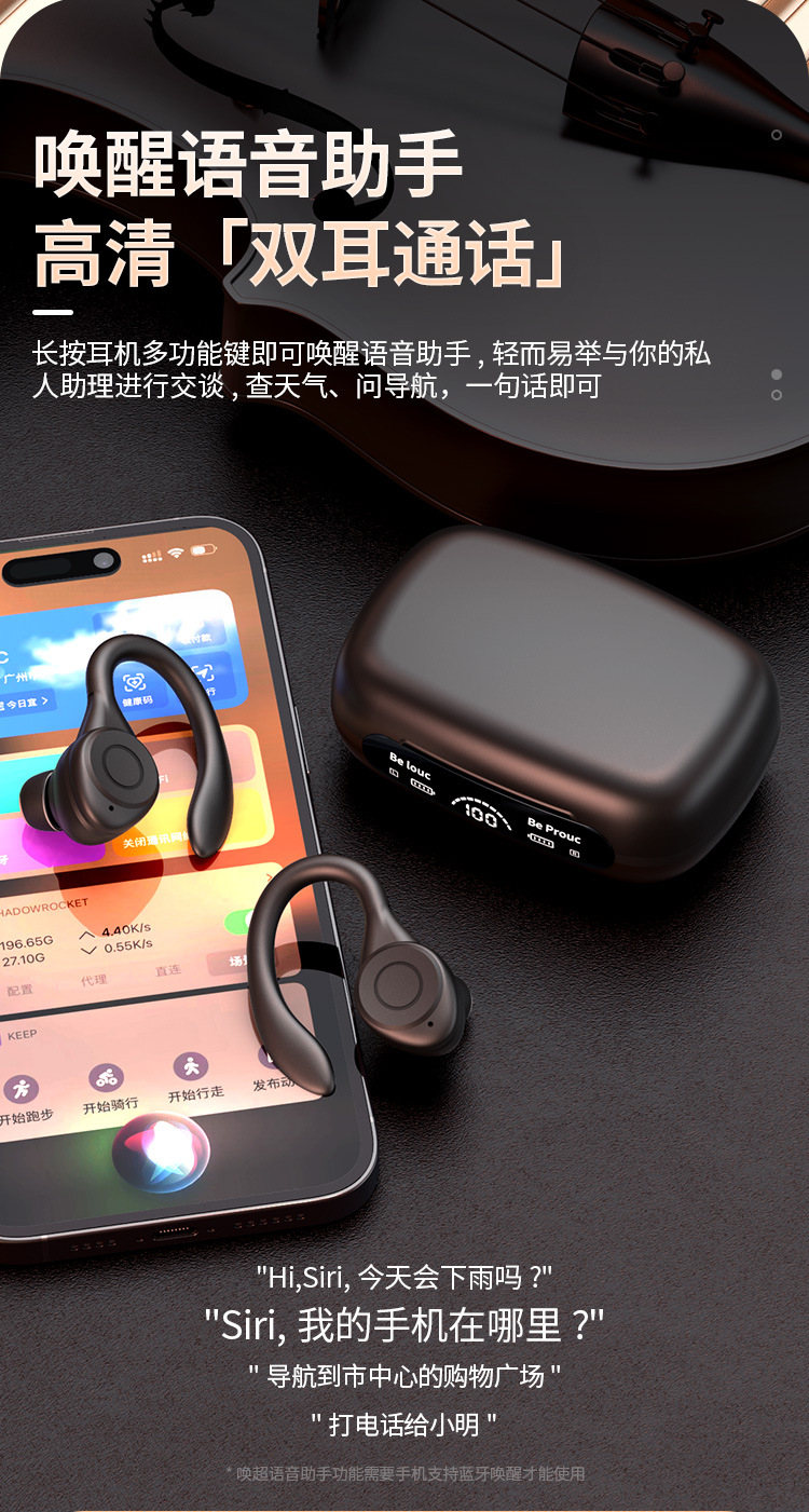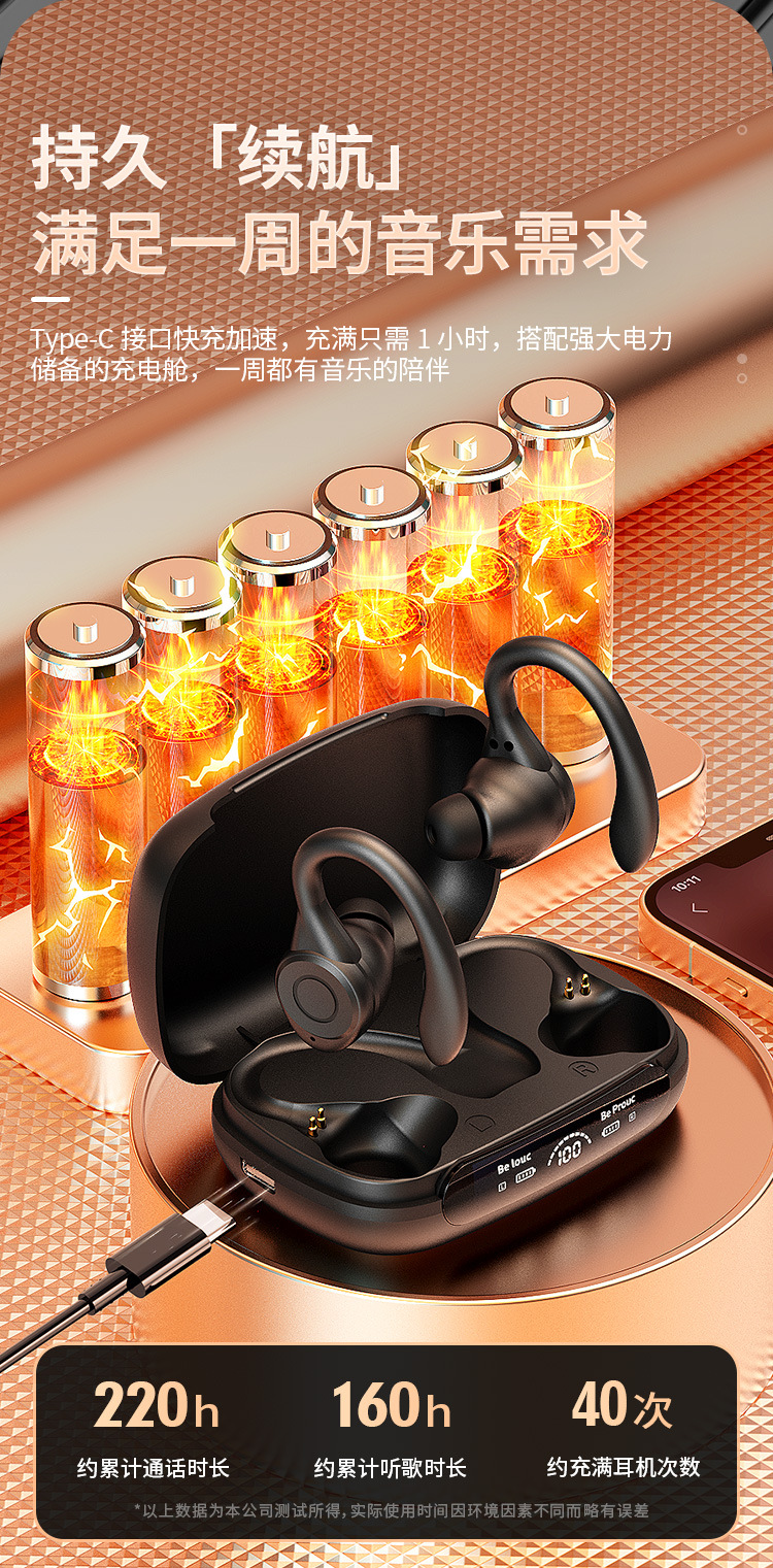 공장 직접 공급 새로운 귀 걸이 Y7 무선 블루투스 헤드셋 스포츠 디지털 디스플레이가있는 개인 모델 tws를 실행