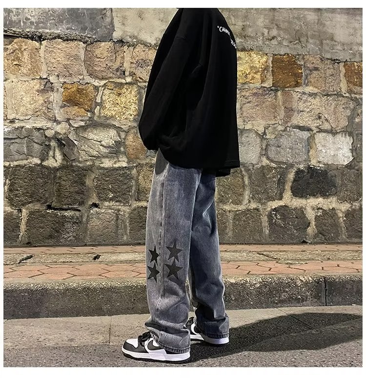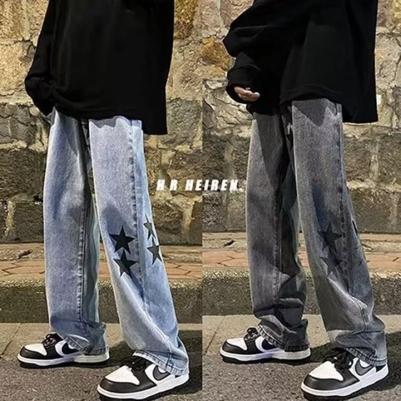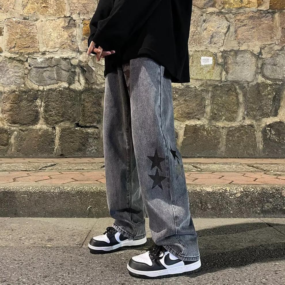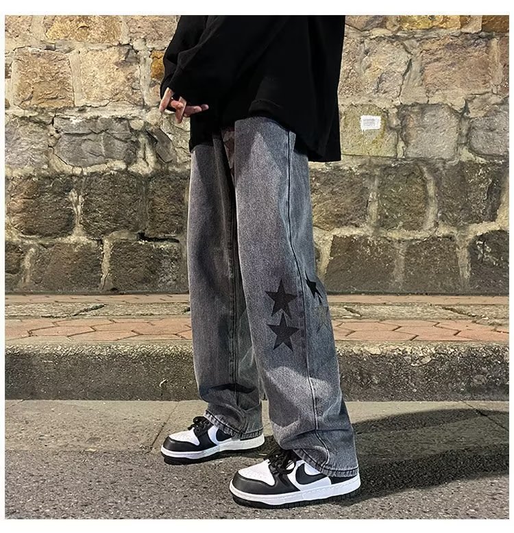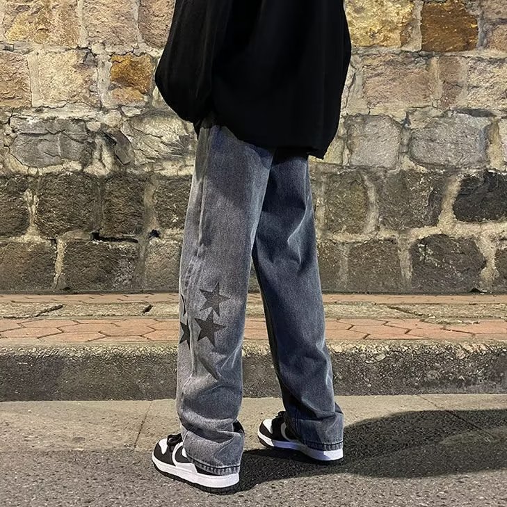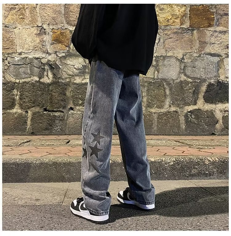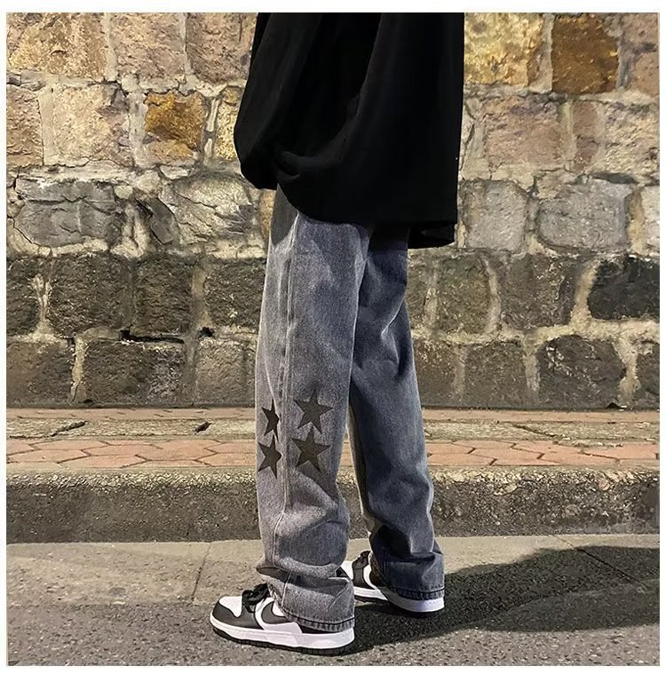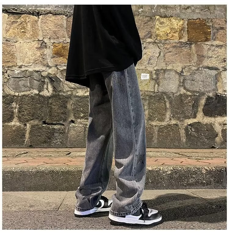 유럽과 미국의 하이 스트리트 팬츠 트렌디 스모키 그레이 청바지 남성용 느슨한 스트레이트 와이드 레그 팬츠 가을과 겨울스토어 가기