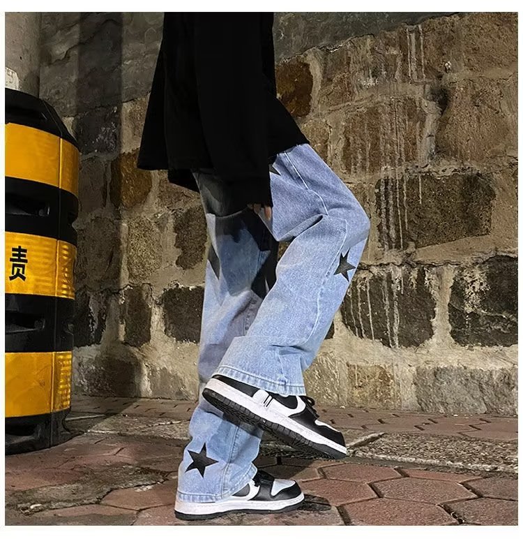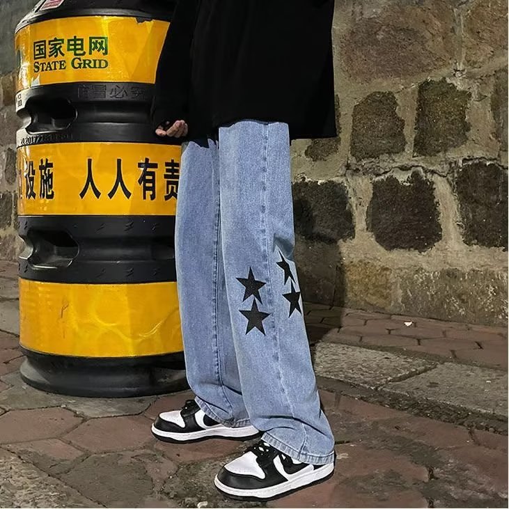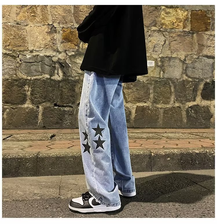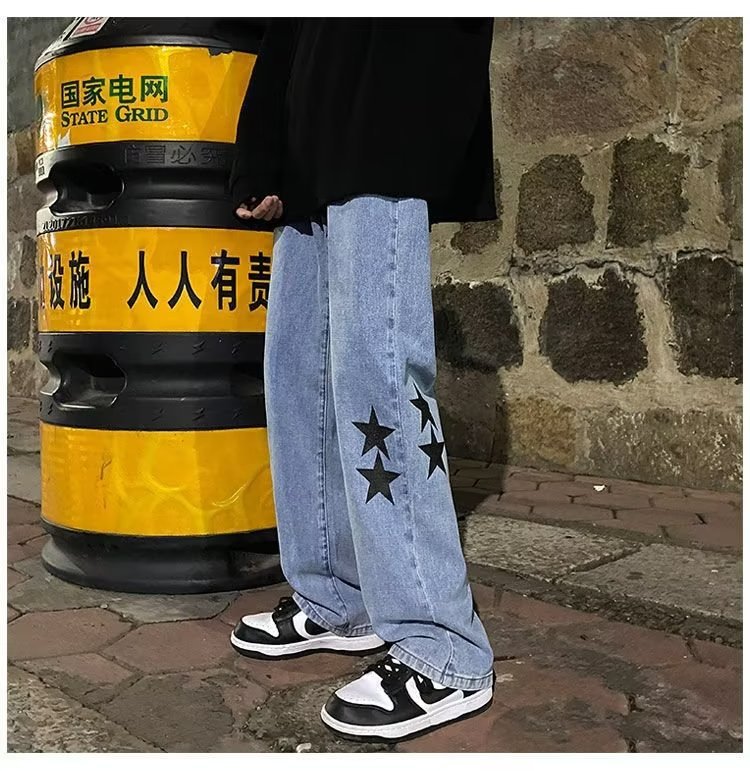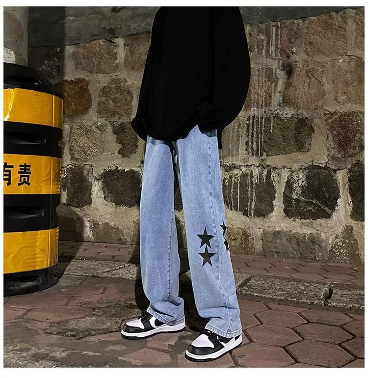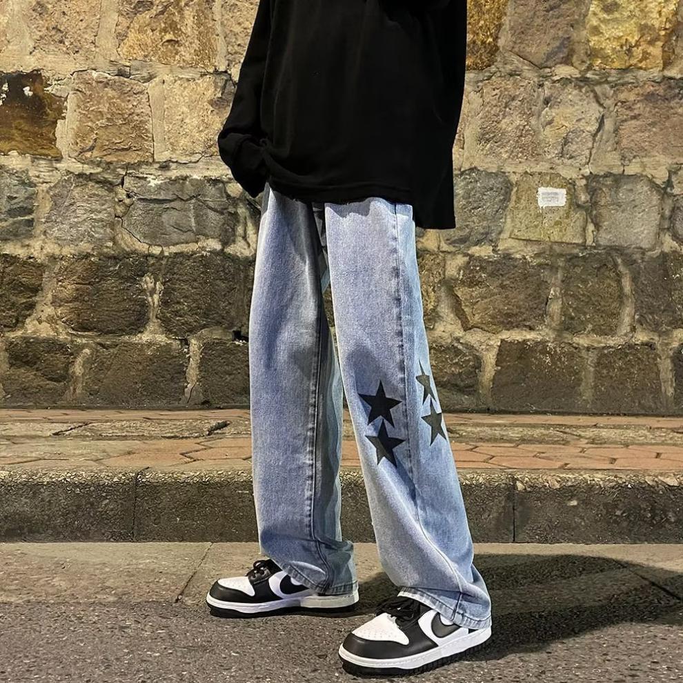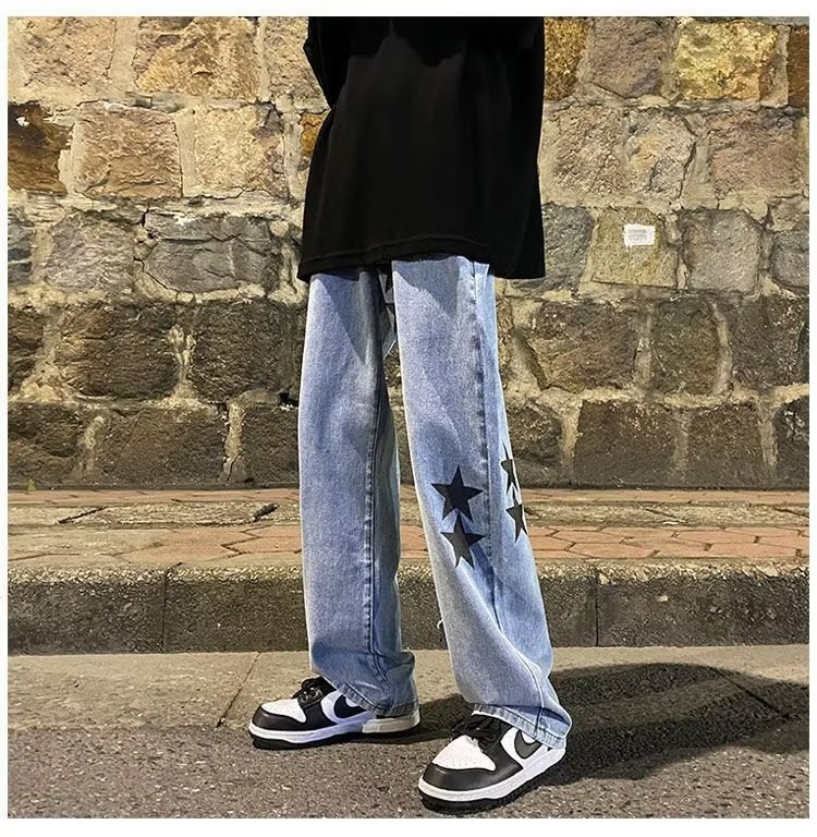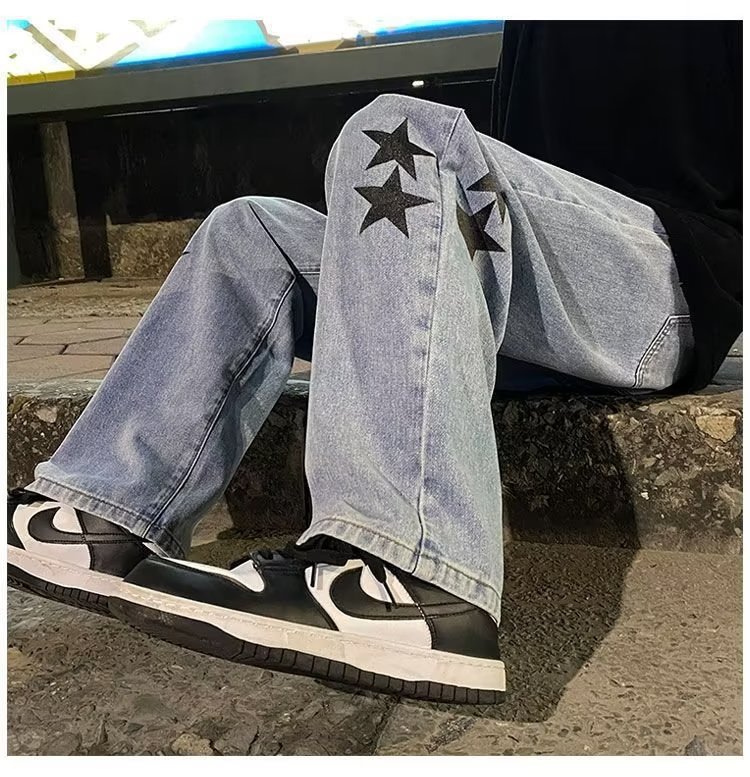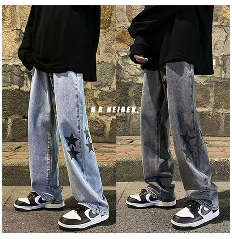 유럽과 미국의 하이 스트리트 팬츠 트렌디 스모키 그레이 청바지 남성용 느슨한 스트레이트 와이드 레그 팬츠 가을과 겨울스토어 가기