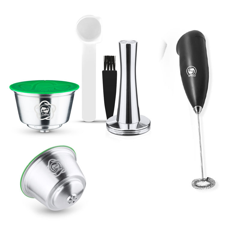 • 단일 캡슐 + 파우더 프레싱 해머 + 우유 거품기 + 스푼 브러시