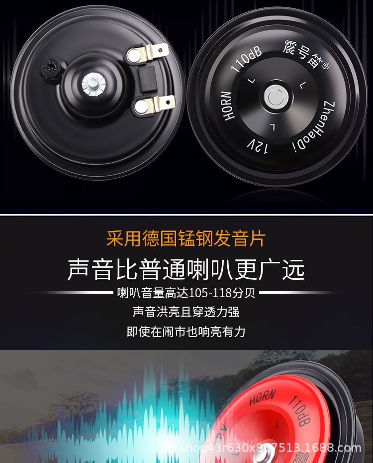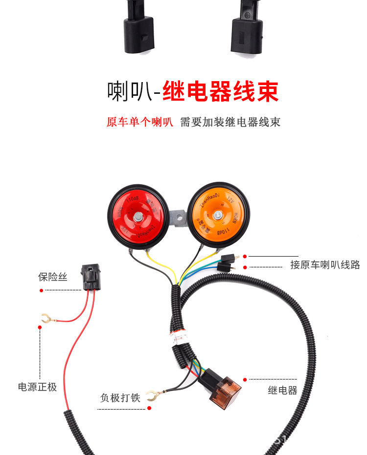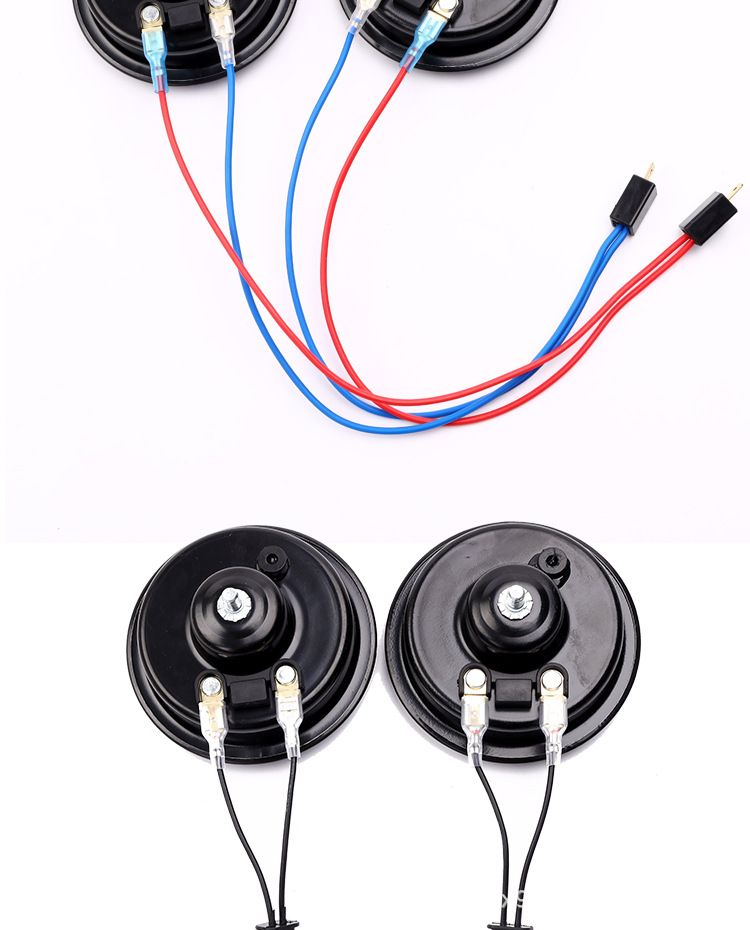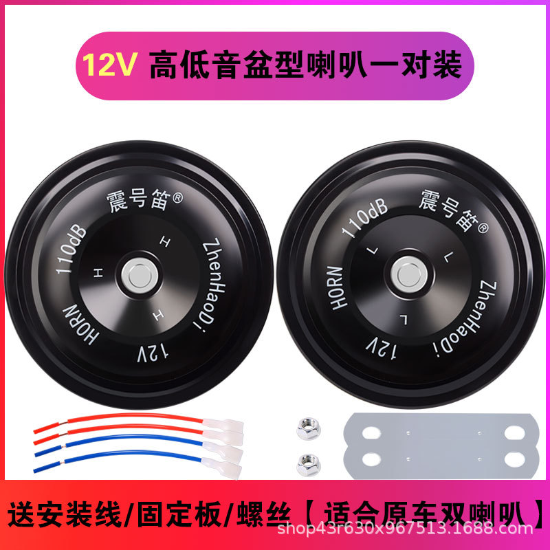 충격 휘슬 12v 검은 분지 오토바이 호루라기 경적 자동차 보편적 인 수정 높고 낮은 이중 톤 전기 경적