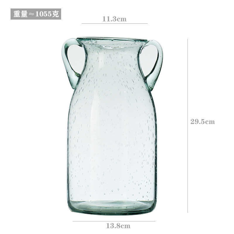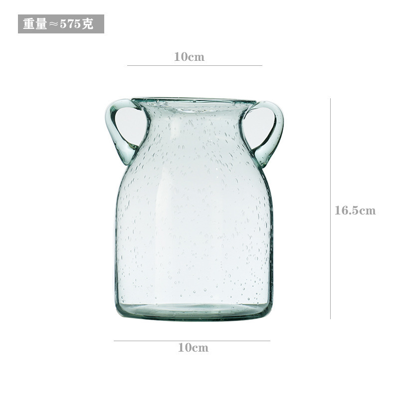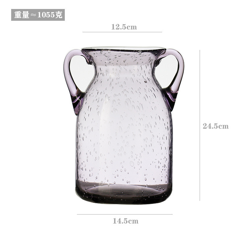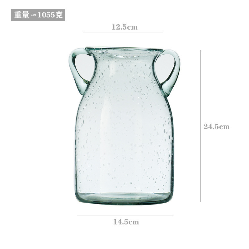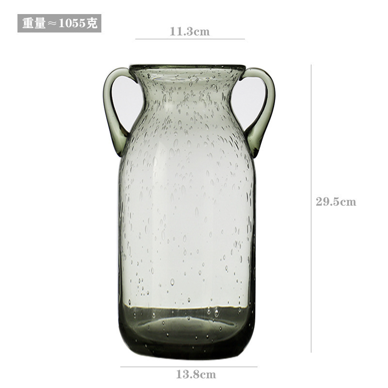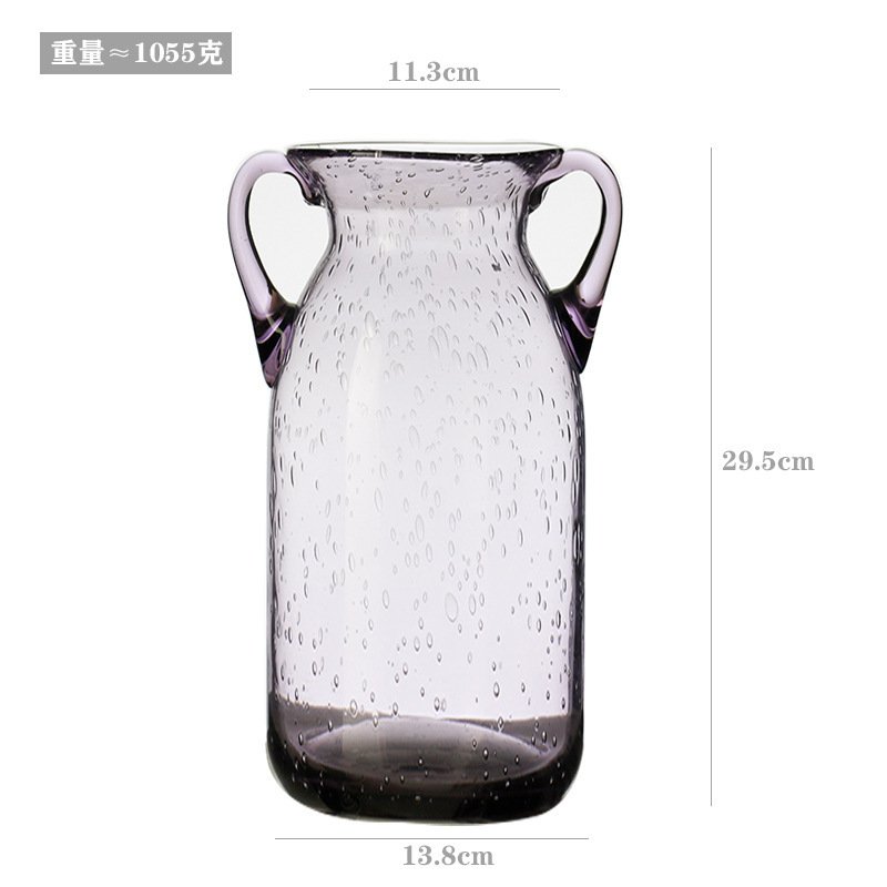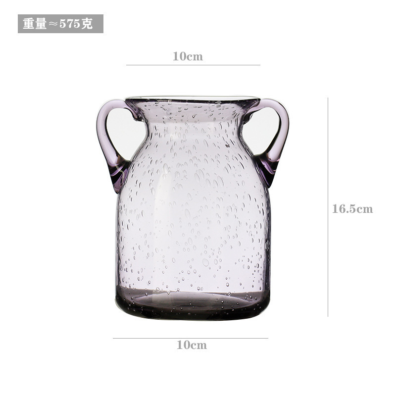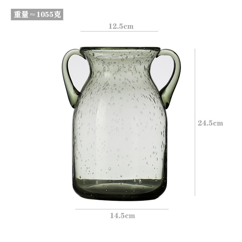유럽풍의 창의적인 이중 손잡이 거품 유리 꽃병, 오리지널 컬러, 가정 거실 장식 공예품, 꽃꽂이용 물병