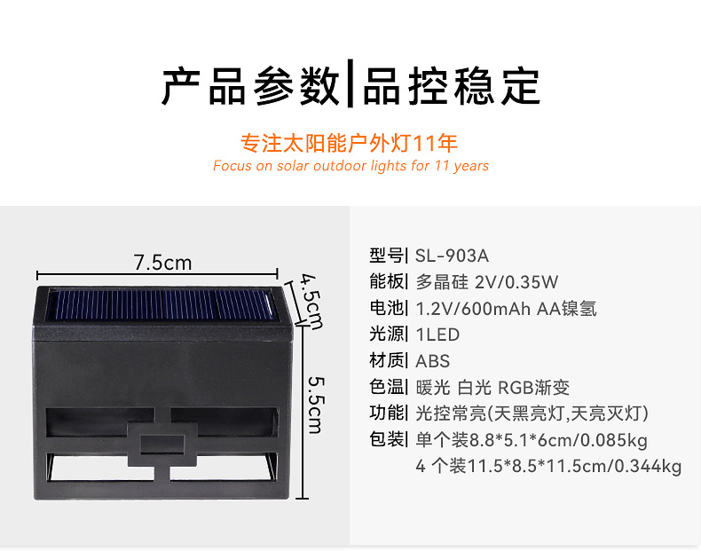 • 903A 옥외 장식 벽 램프 [화이트 라이트] 조명 제어 + 항상 켜기