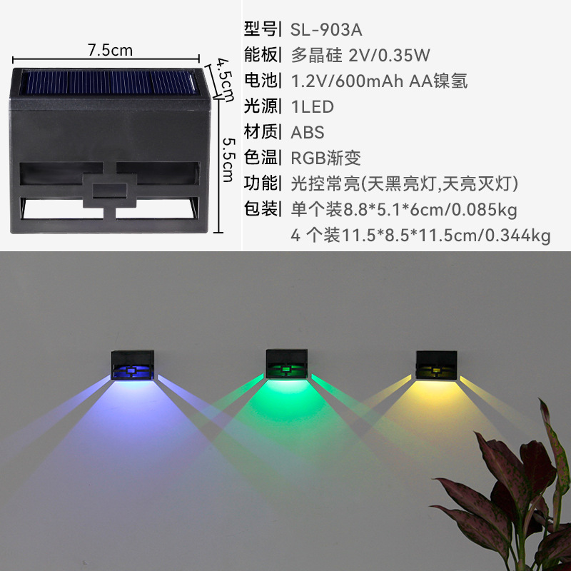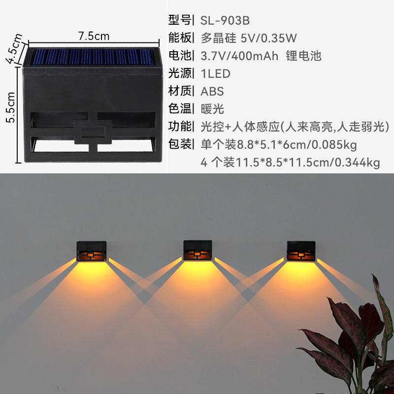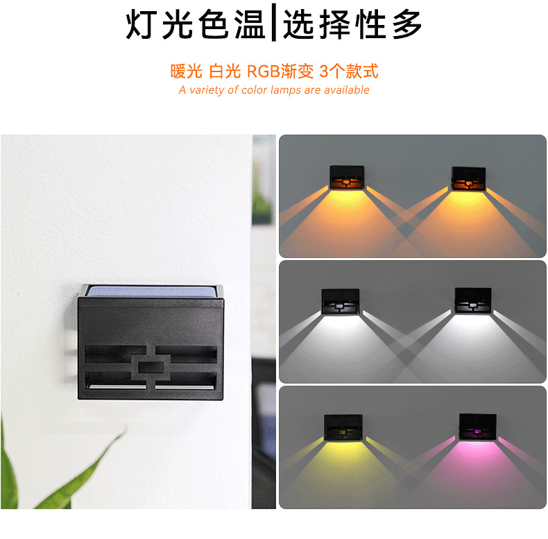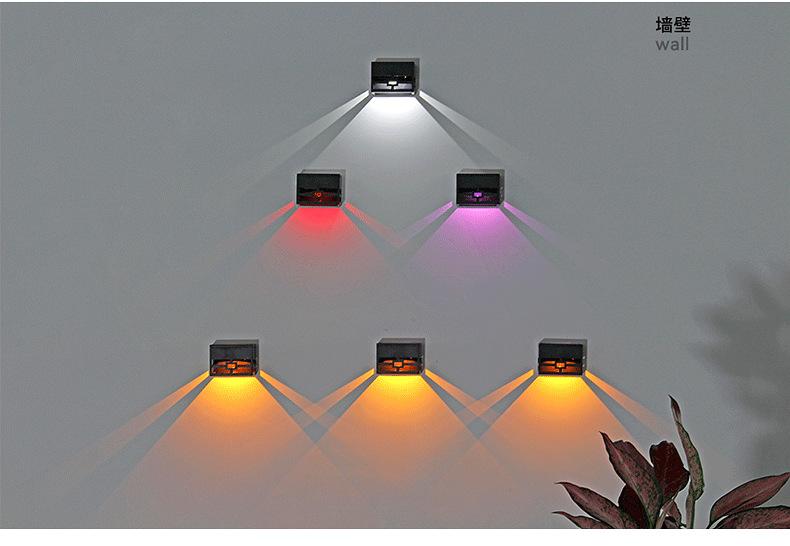 야외 태양 벽 세척기 조명 홈 스텝 계단 울타리 장식 풍경 조명 RGB 인체 유도 소형 벽 조명