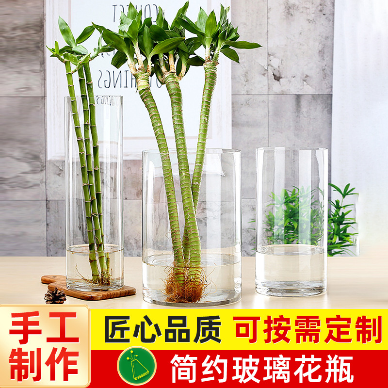 직선형 바닥 꽃병 거실 장식 원통형 유리병 부유한 대나무 백합 꽃꽂이 창의적 생태 용기 장식품스토어 가기
