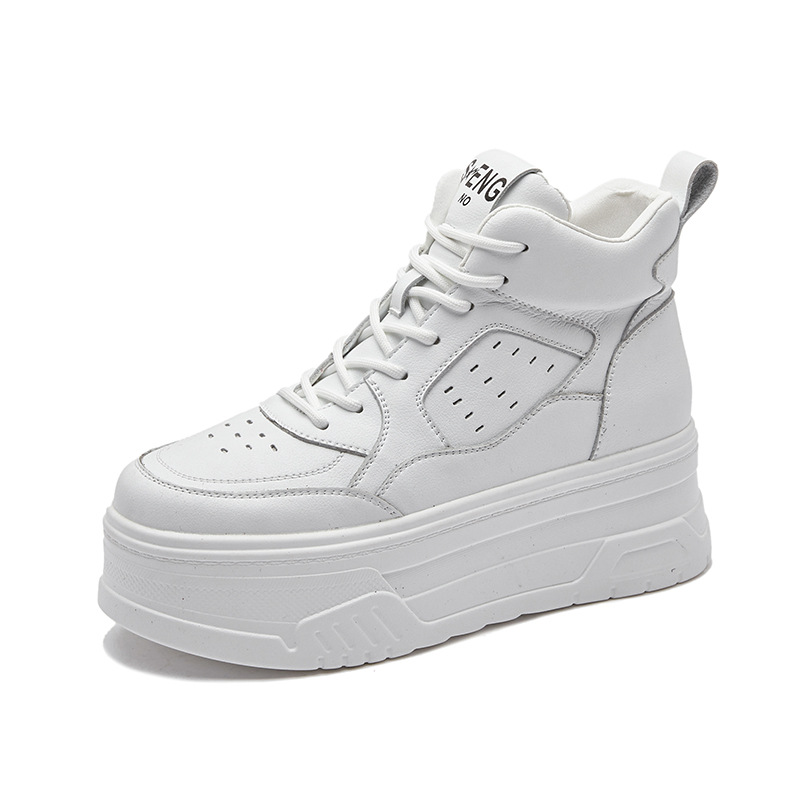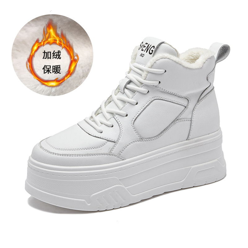 하이탑 화이트 슈즈 여성 폭발 2023 뉴 기모 가죽 캐주얼 슈즈 네트 레드 두꺼운 밑창 증가 스포츠 플랫폼 슈즈