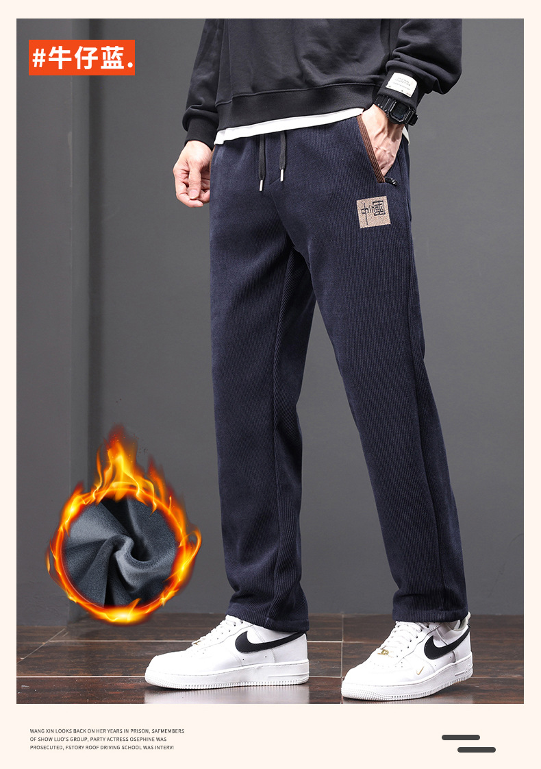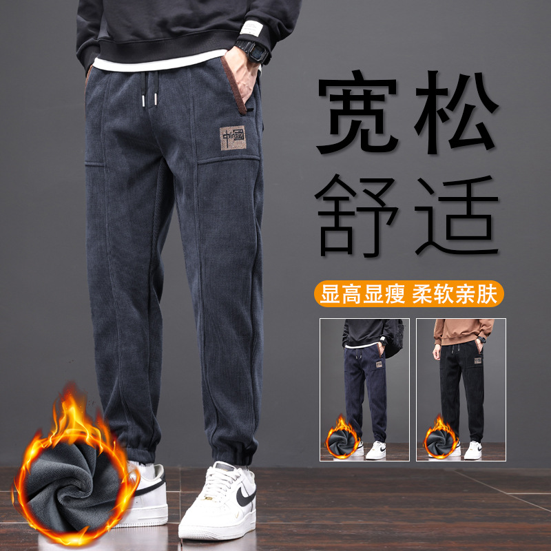 가을과 겨울 새로운 유럽 면 벨벳 따뜻한 바지 남자의 땀 바지 느슨한 기모 두꺼운 남자의 스포츠 캐주얼 바지