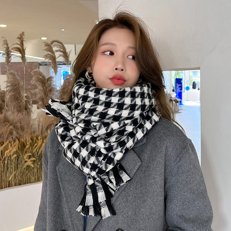 여성을위한 Houndstooth 스카프 겨울 2022 새로운 체크 무늬 캐시미어 스카프 도매 공장 여성용 두꺼운 목도리 스카프스토어 가기