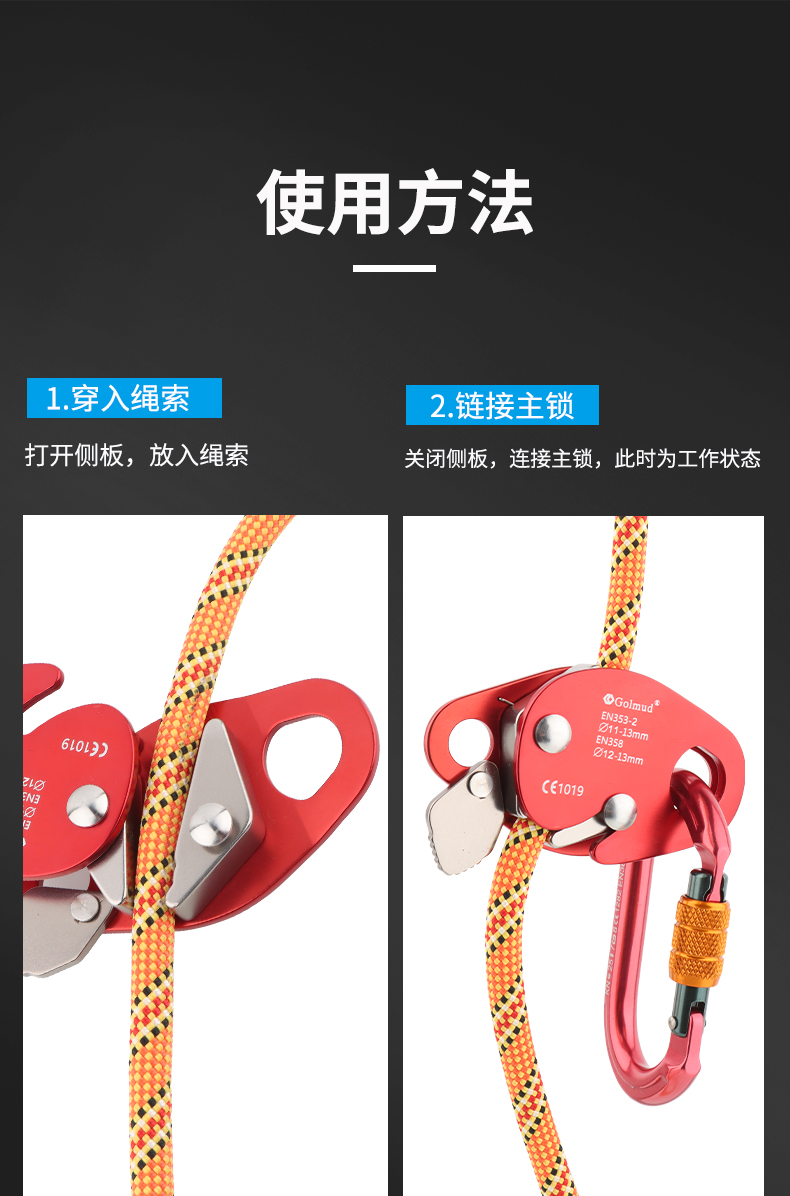 Golmud 안전 로프 자동 잠금 장치 GM9211 에어컨 로프 그랩 장치가있는 고공 낙하 방지 야외 암벽 등반 낙하 방지 장치스토어 가기