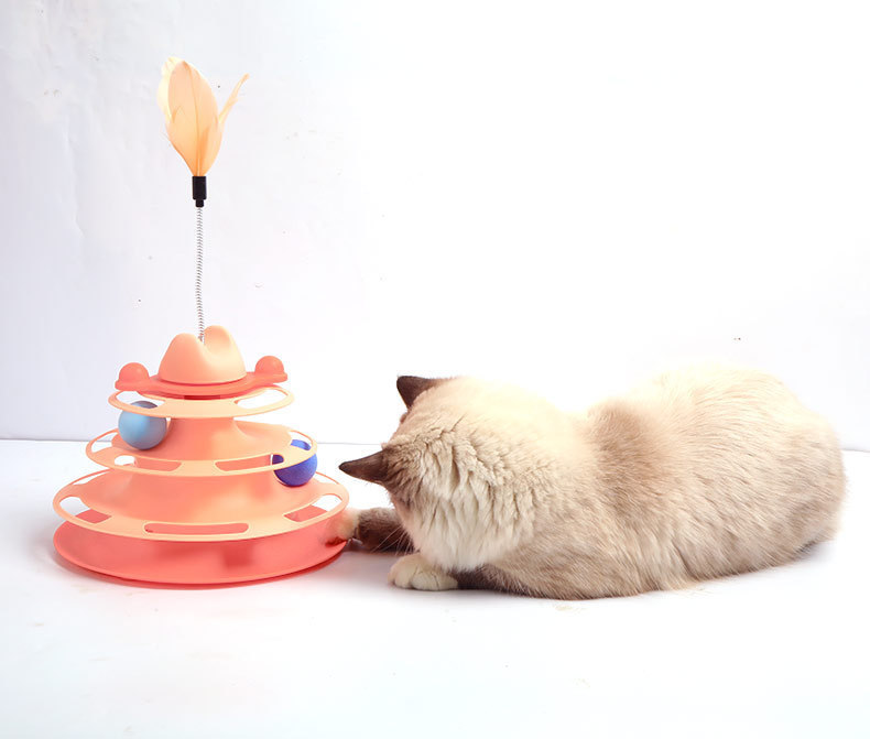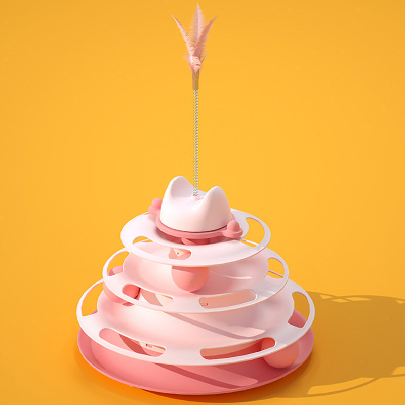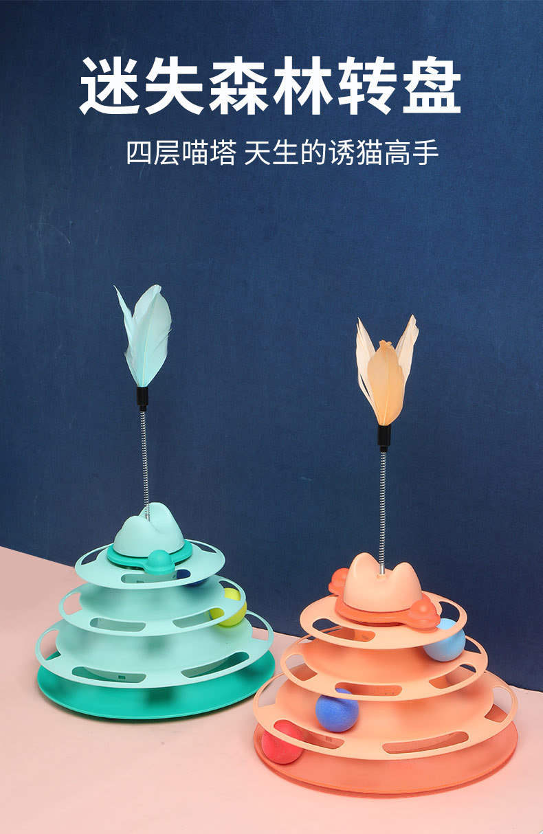 아마존 폭발성 고양이 장난감 4 층 궤도 고양이 턴테이블 깃털 고양이 티저 스틱 스페이스 타워 게임 디스크 애완 동물 용품스토어 가기