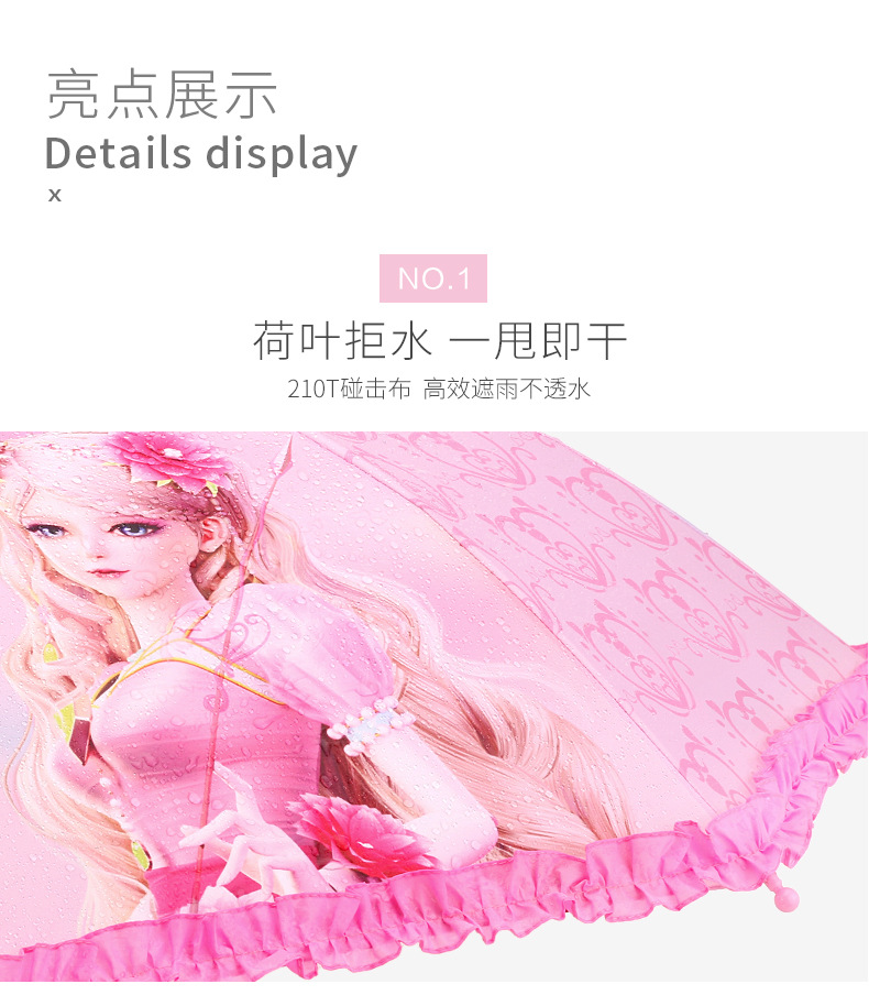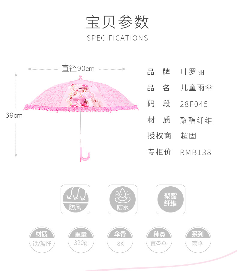 예 Luolibing 공주 아기 우산 소녀 유치원 여자 초등학교 학생 긴 손잡이 반자동 어린이 우산